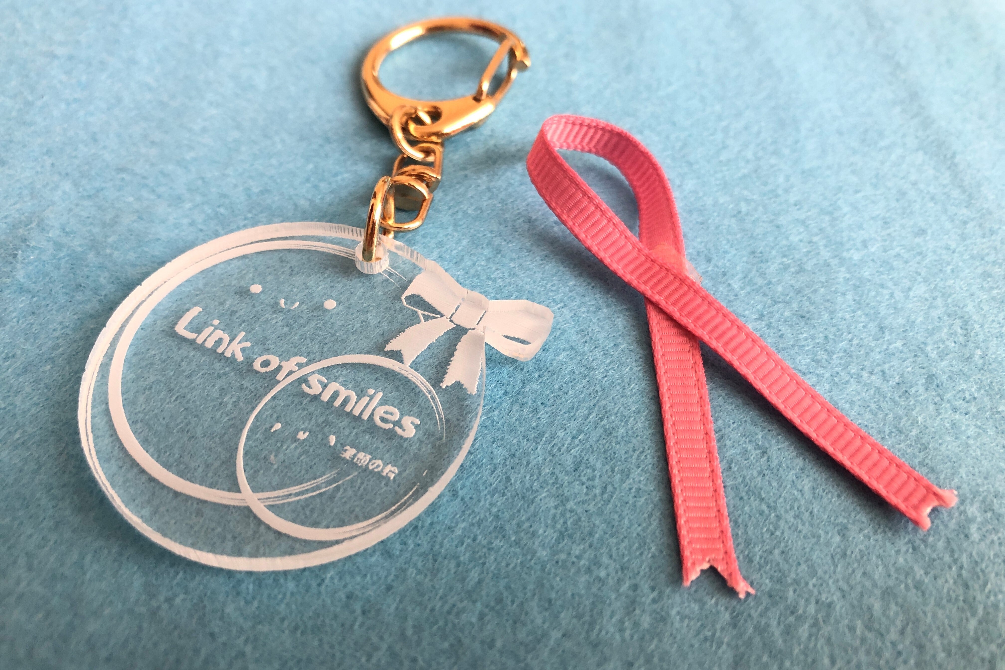 これは、ピンクリボンなど様々なリボンマークがあるけれど、マークや物だけではなく、人と人が心と心が繋がっていけたら良いなと言う願いを込めています。