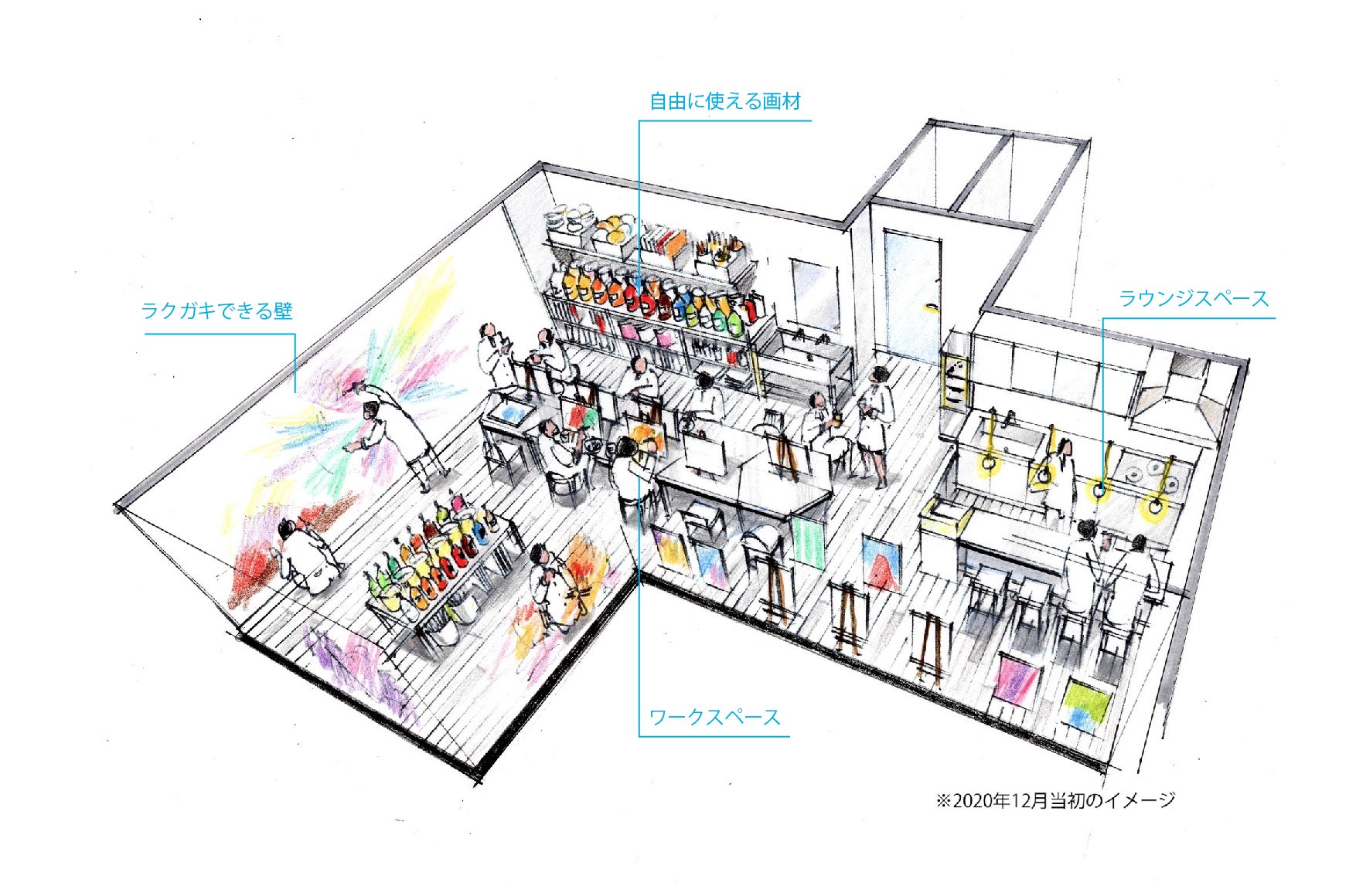 単に絵を描く場だけではなく「ラウンジ」機能を設けることによって