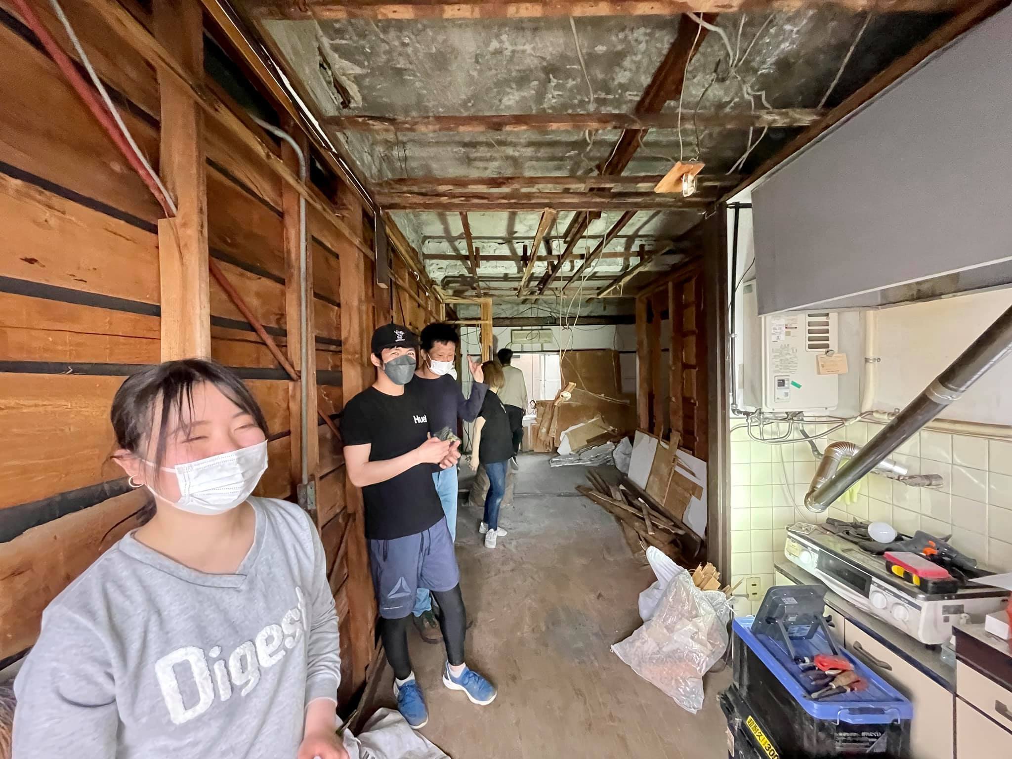 そんな空堀につくるペイント・ラウンジの拠点は築50年を超える5階建てのテナントビルの2部屋を大工さん指導のもと自分たちで解体して造っていきます。