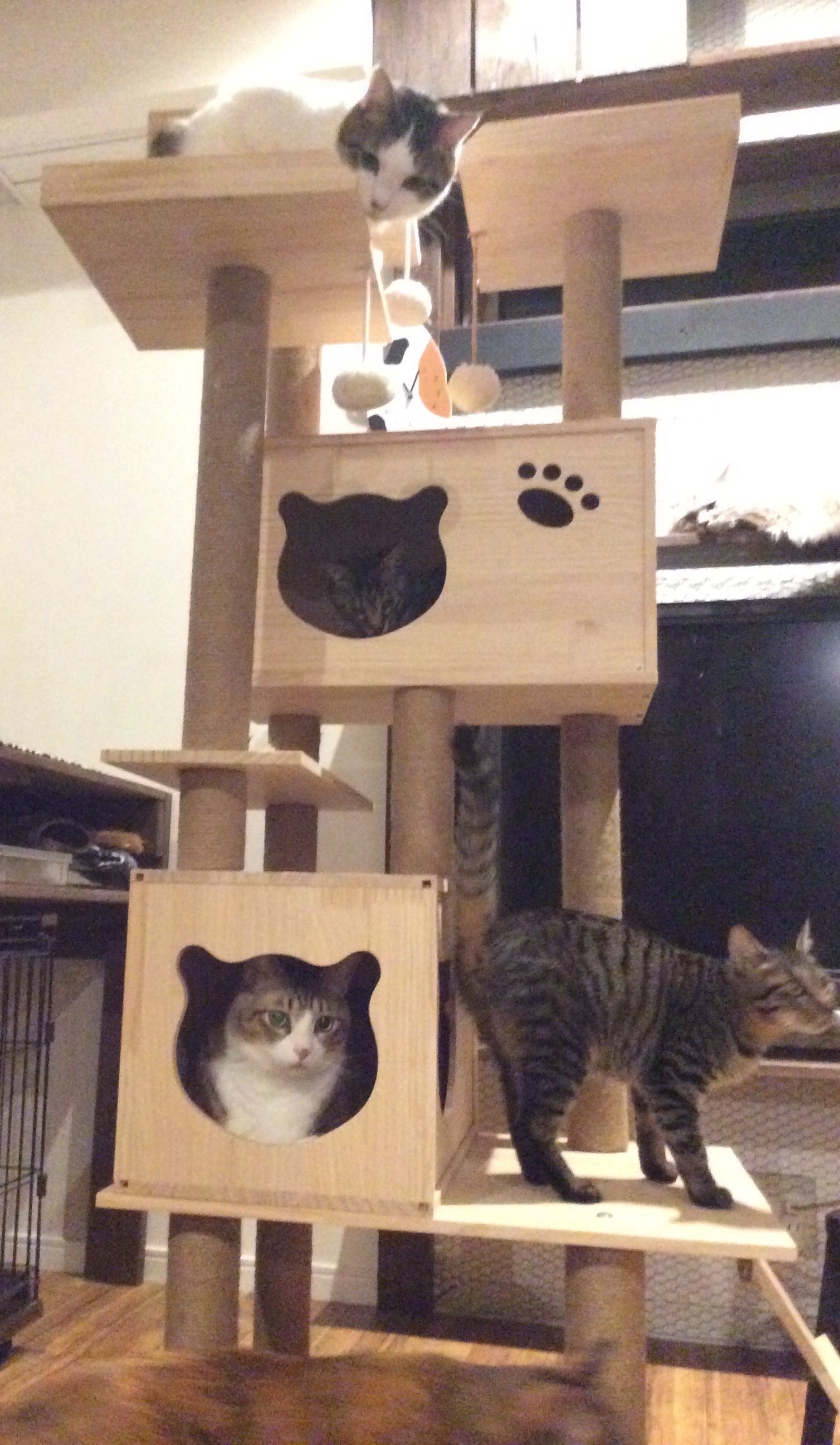 キャットタワーありがとうございます。リビングで組み立て中も大人気♪でも、これは梅子ちゃんのだよ組み立て完了後、エイズキャリアのお部屋に。梅子ちゃん 本当に嬉しそうです。ありがとうございます。