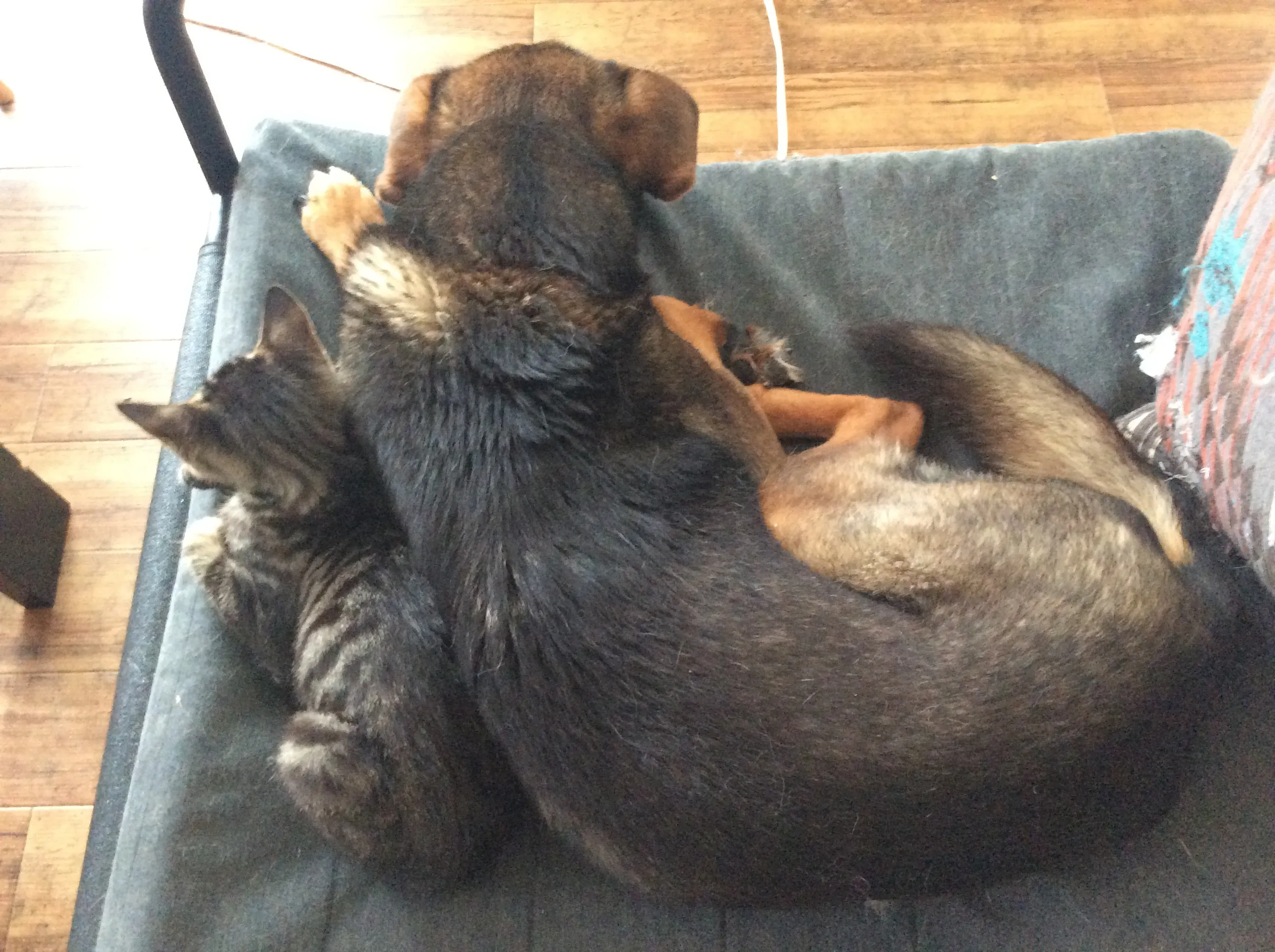 子猫は、まだエイズ、白血病の検査ができてはいないんですが、他の子と慣らすためにノンキャリアの猫、犬と一緒にしてみました。