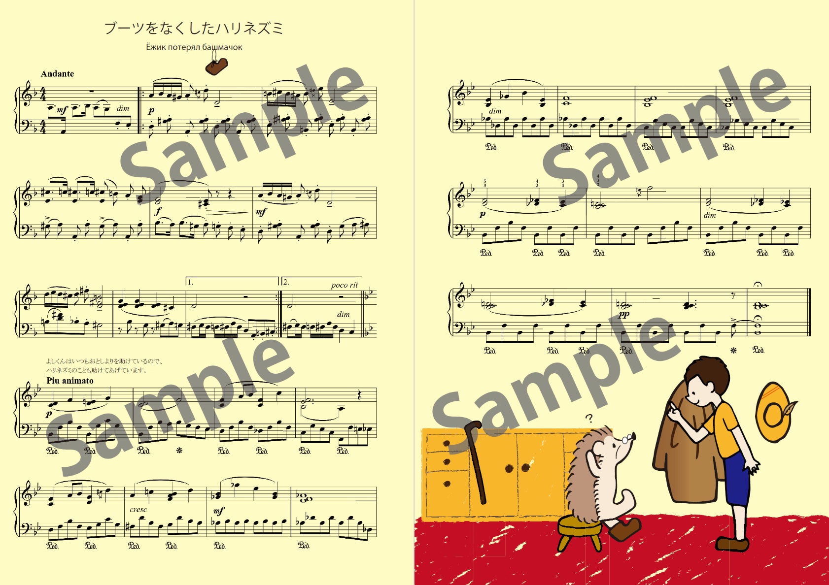 絵に関しては私としても初めての試みでした。まずは鉛筆で絵を描き、パソコンへ取り込んで色を付けました。全ページフルカラーで、楽譜の背景にも絵を入れてあります。よく見ないとわからない仕掛けを入れたりして、見ているだけで楽しめるように心がけました。 絵の中に隠された秘密を探しながら、音楽や物語と一緒に楽しんでいただきたいです。
