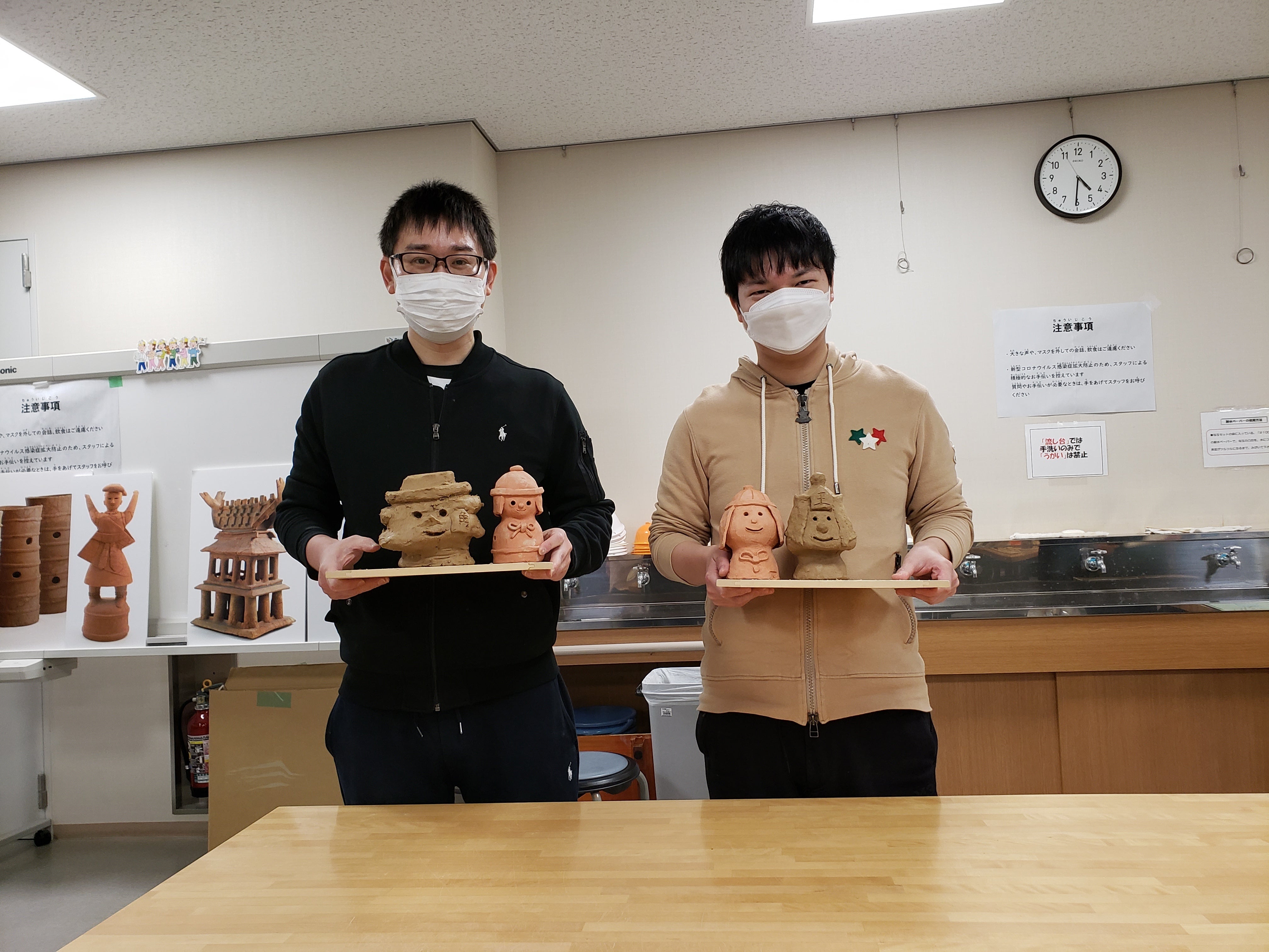 写真は、先日高槻市立今城塚古代歴史館で行われた体験イベントでの山崎隆之八段(左)と高見泰地七段(右)です。今城塚古墳での記念撮影や、はにわづくりを行いました。一人ひとりの個性が光る素敵なはにわが出来上がり、参加者の皆さんからは大好評でした。