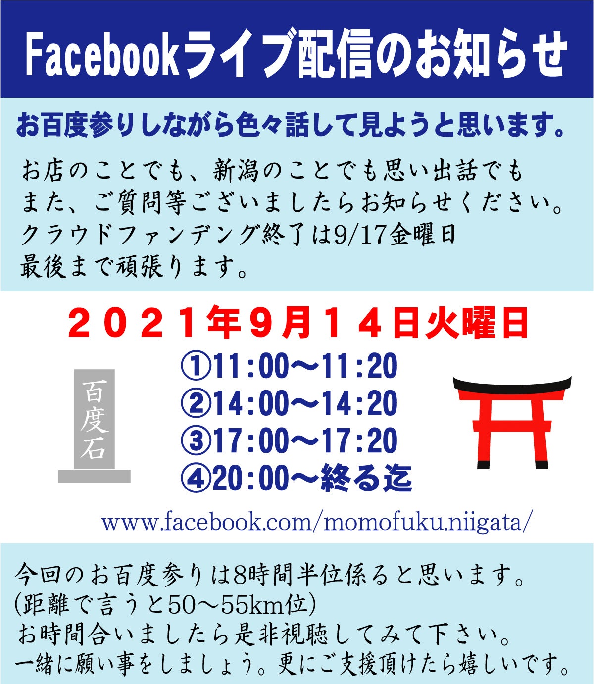 9月14日火曜日にクラウドファンディングにご支援下さっている方々に感謝の気持ちを込めてお百度参りをします。皆様のご多幸を願います。その時は場所を教えますのでその方角に向かって今湯川が願っていますももふくに支援しました〇〇です、〇〇をお願いしますって願って下さい。御利益が上がると思います。FACEBOOKでライブ配信を20分4回の予定で行います。