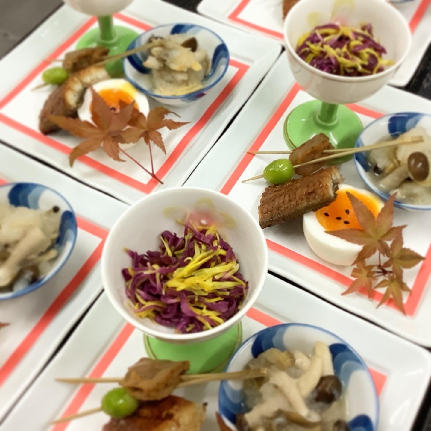 今日の前菜盛合せは柿のもと、食用菊です。秋ですね。