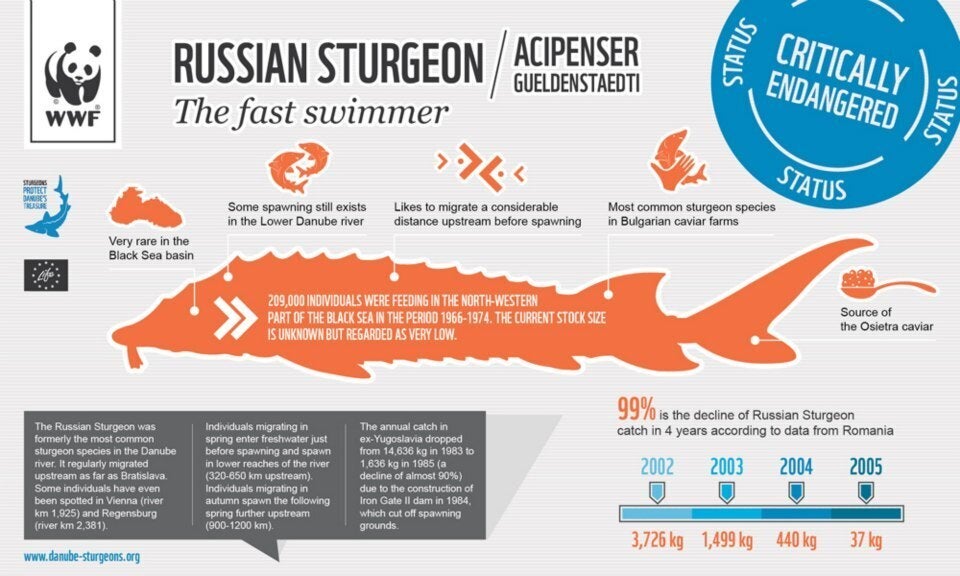 ダム建設によりチョウザメの生域が破壊され、ロシアンチョウザメが99%減少