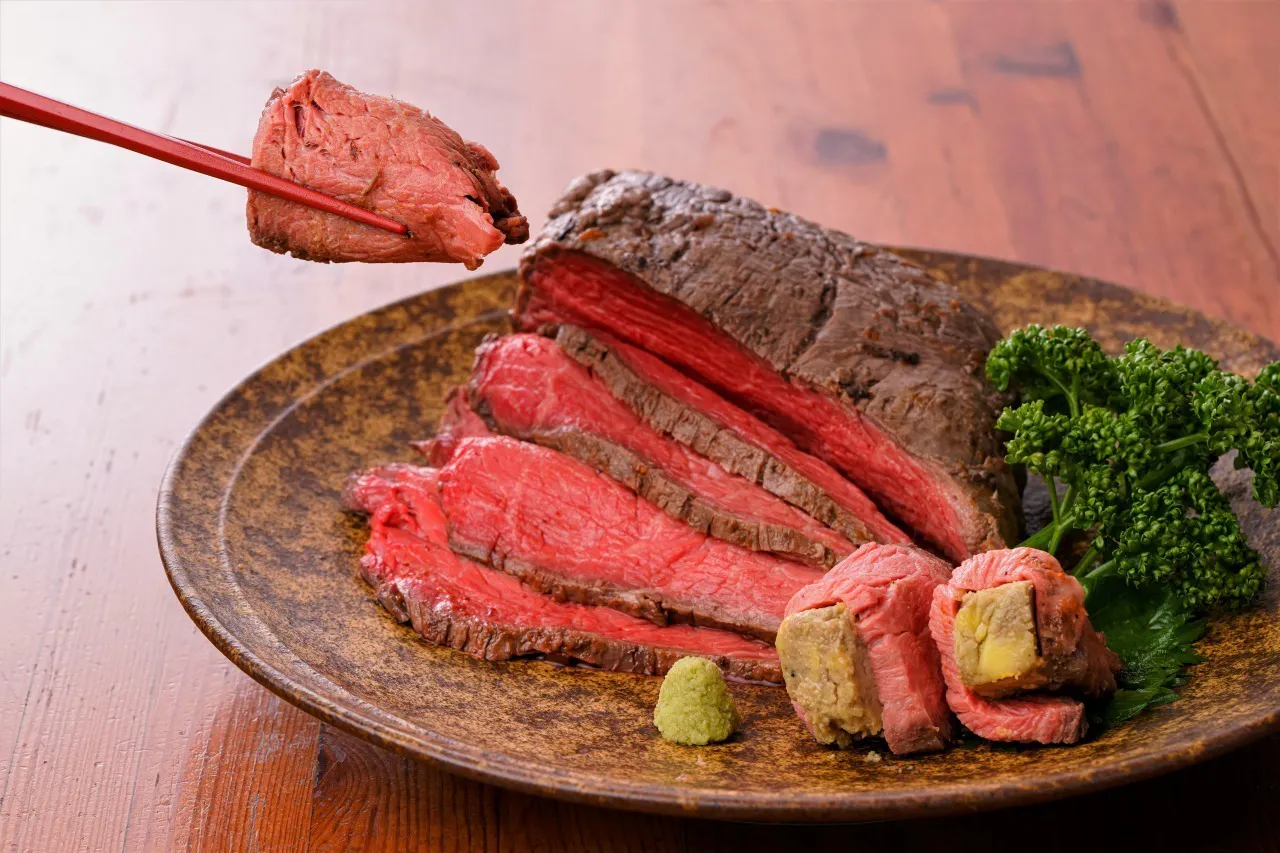 ローストビーフに巻いて、フォアグラのコクをプラス!!