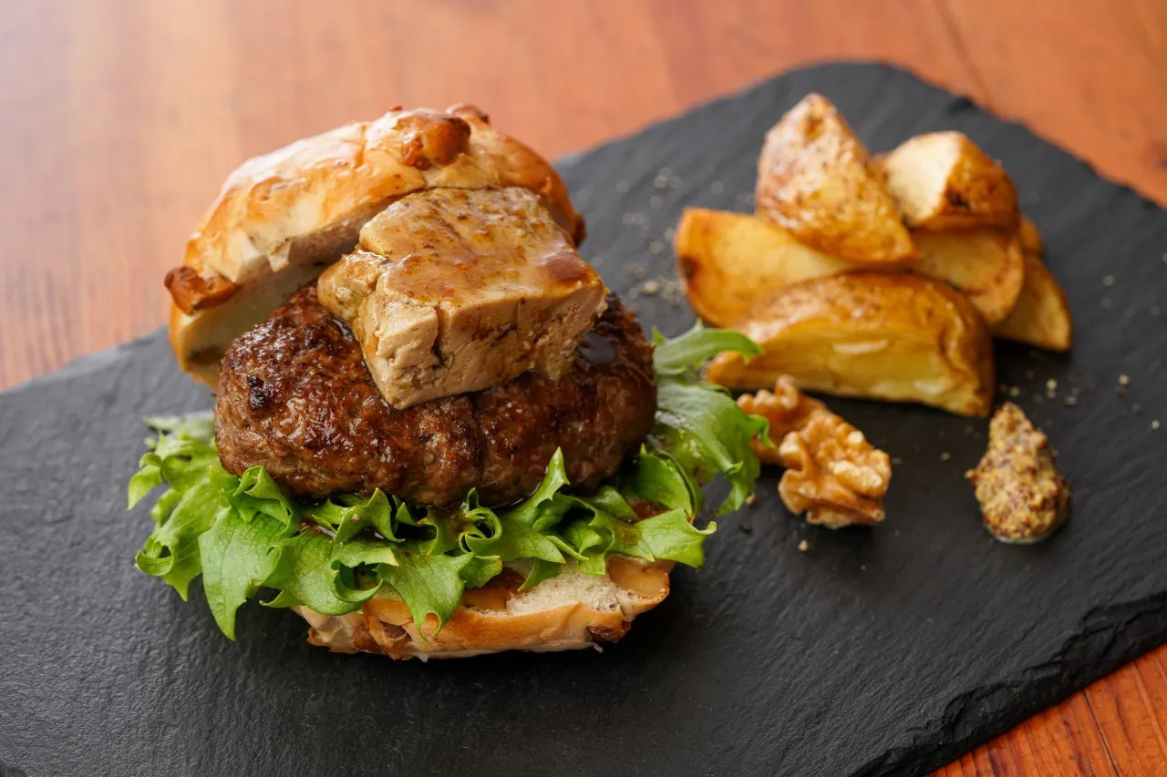 ハンバーガーの上にのせてフォアグラバーガーに
