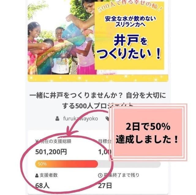 2日目にして、既に50%を超えるご支援を頂いております。