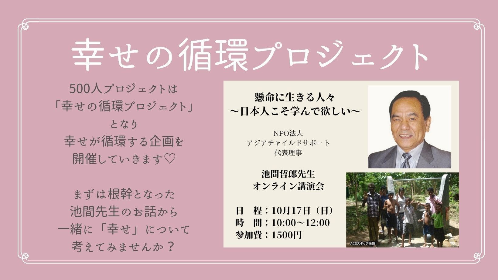 NPO法人 アジアチャイルドサポート代表の、池間哲郎先生をお迎えし