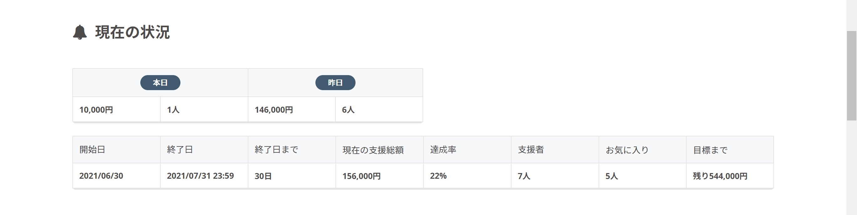 この記事を書いている7月1日昼頃では、156000円のご支援をいただいています。