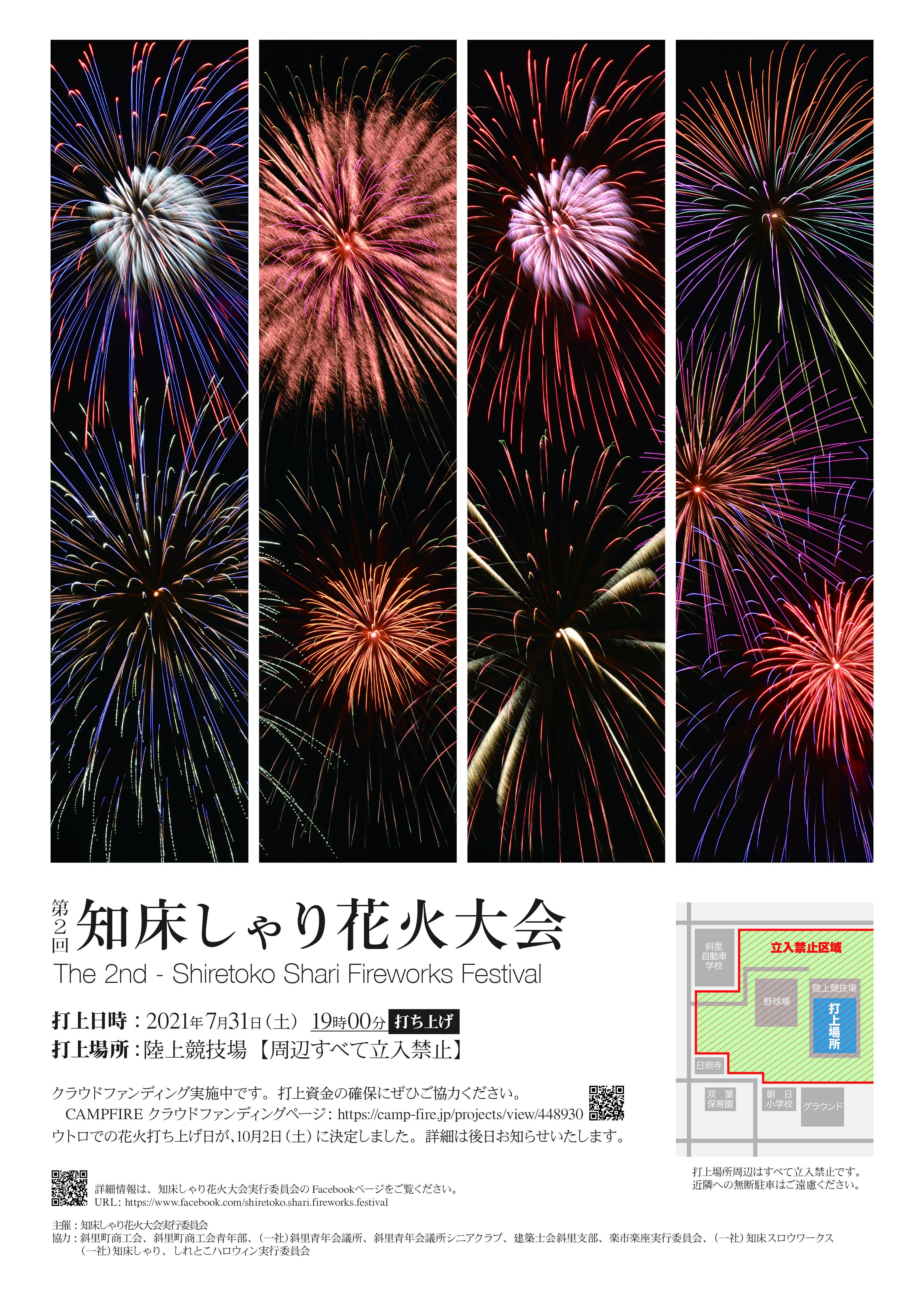 2021/11/26 11:46支援者の皆様へ「第2回知床しゃり花火大会 花火をいっぱい打ち上げて斜里を元気いっぱいにしよう!」プロジェクトオーナーの知床しゃり花火大会実行委員会です。大変お待たせいたしましたが、本日メールとCAMPFIREのメッセージ機能にて、ご支援のリターンを送りましたのでご確認ください。知床しゃり花火大会は、皆様からのご支援があり無事に開催することができました。ご支援いただきまして誠にありがとうございました。今後とも、どうぞよろしくお願いいたします。知床しゃり花火大会実行委員会 もっと見る花火打ち上げ場所の現地視察を行いました