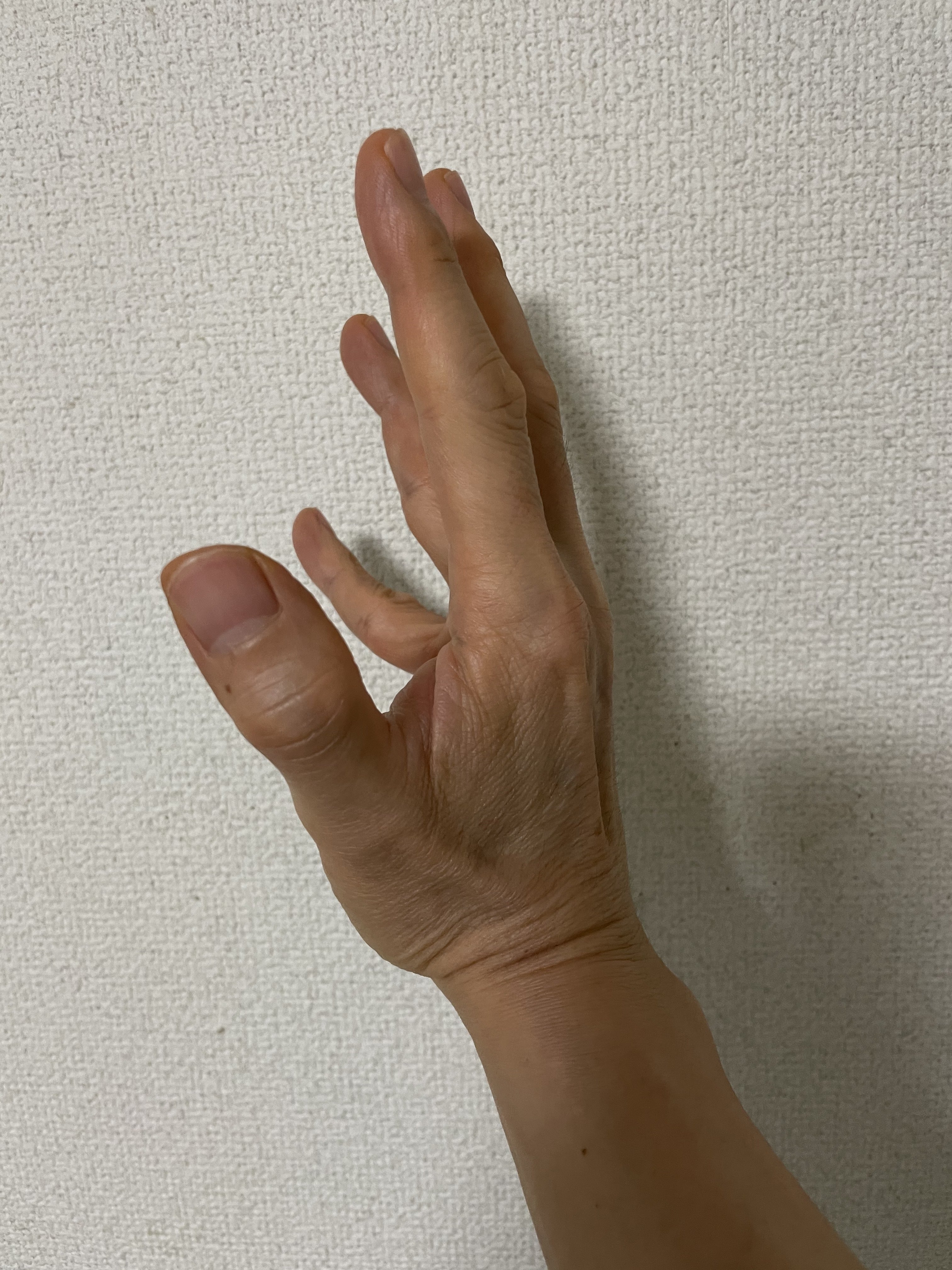 基本技法❷手首極め〜合気柔術で相手に手を掴まれた際に使う技法。これを「健 武 動」に応用し指先から逆に体の方向へ力が伝わるようにして、指先を張り掌はボールを掴むようにして指先を真っ直ぐに伸ばします。型を行う際には必ずこの形を作りながら動作を行います。