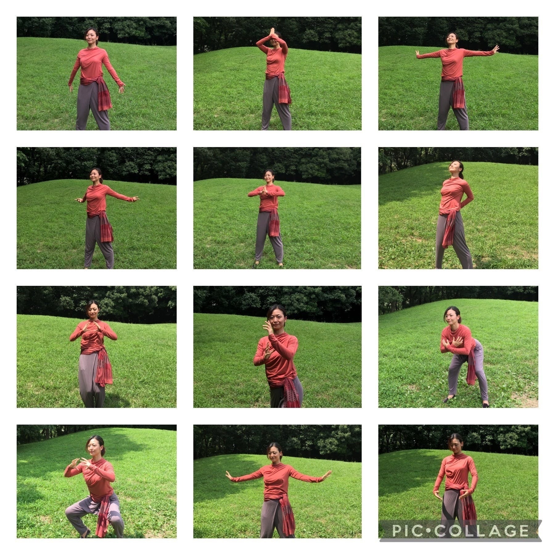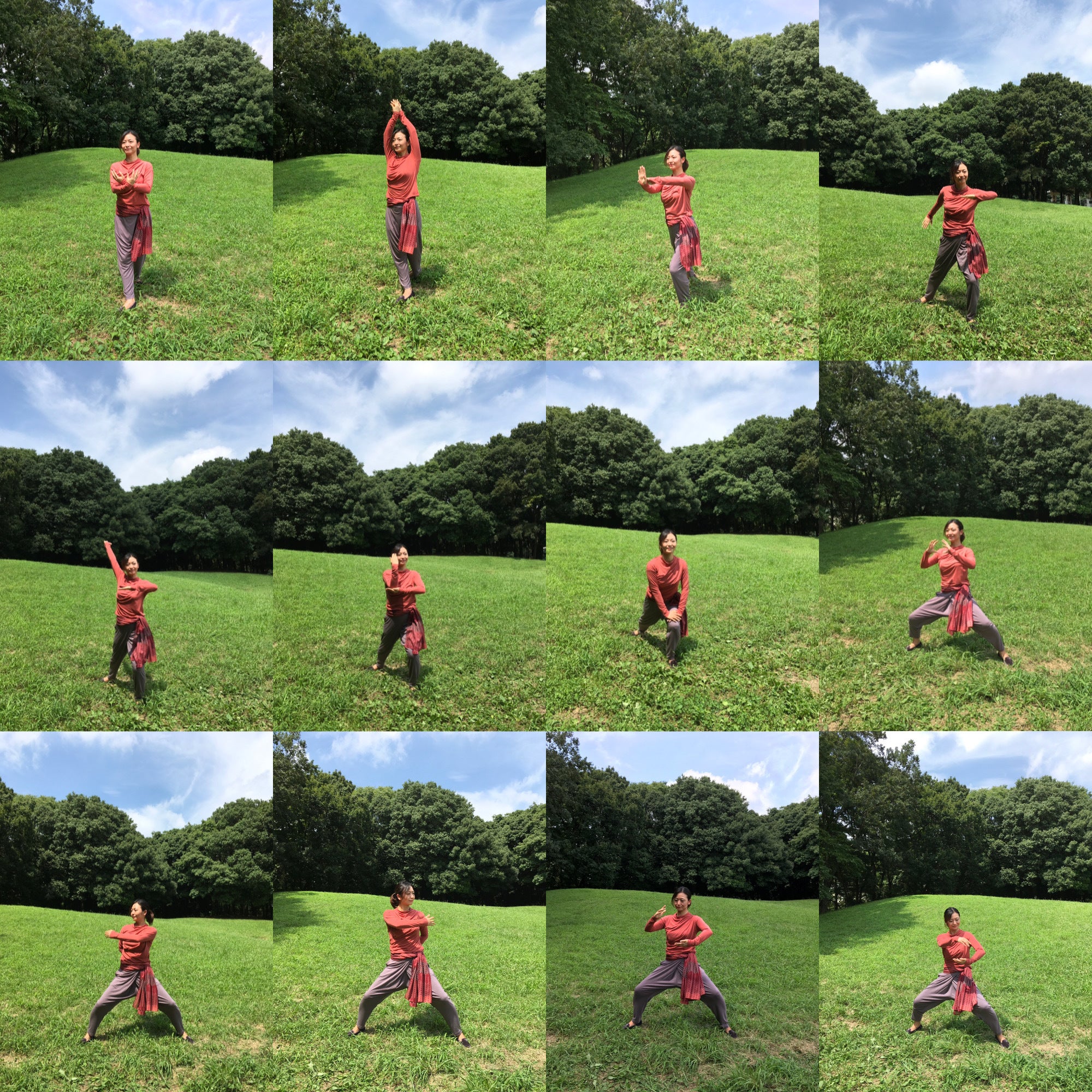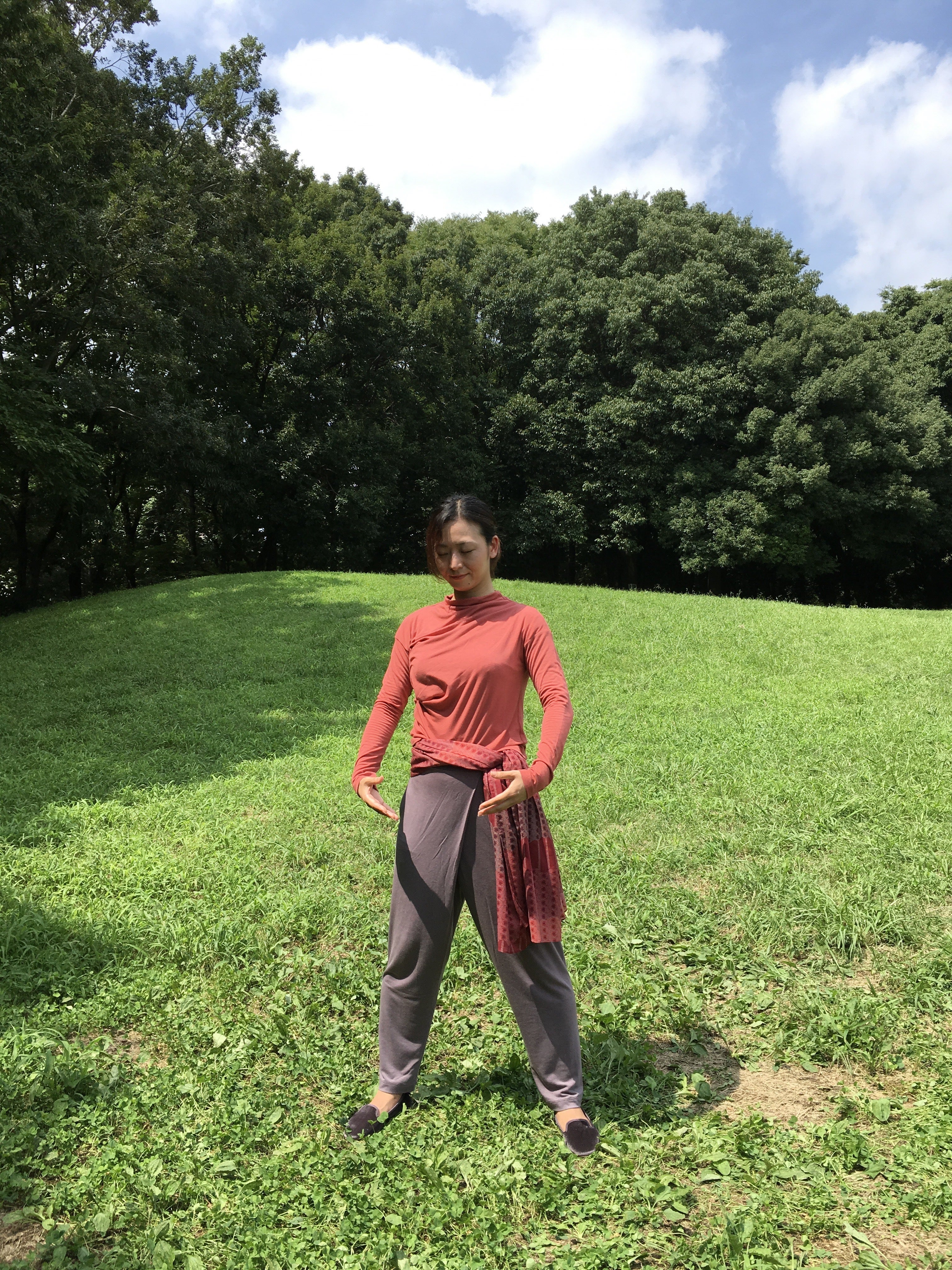 部位別にそれぞれ10の型があり、その前後に始型、終型、そして最後に立瞑想を含めて13の型となります。体幹部を中心に頭頂から足底まで上記「体極動」と「丹田呼吸法」を用いながら行っていきます。