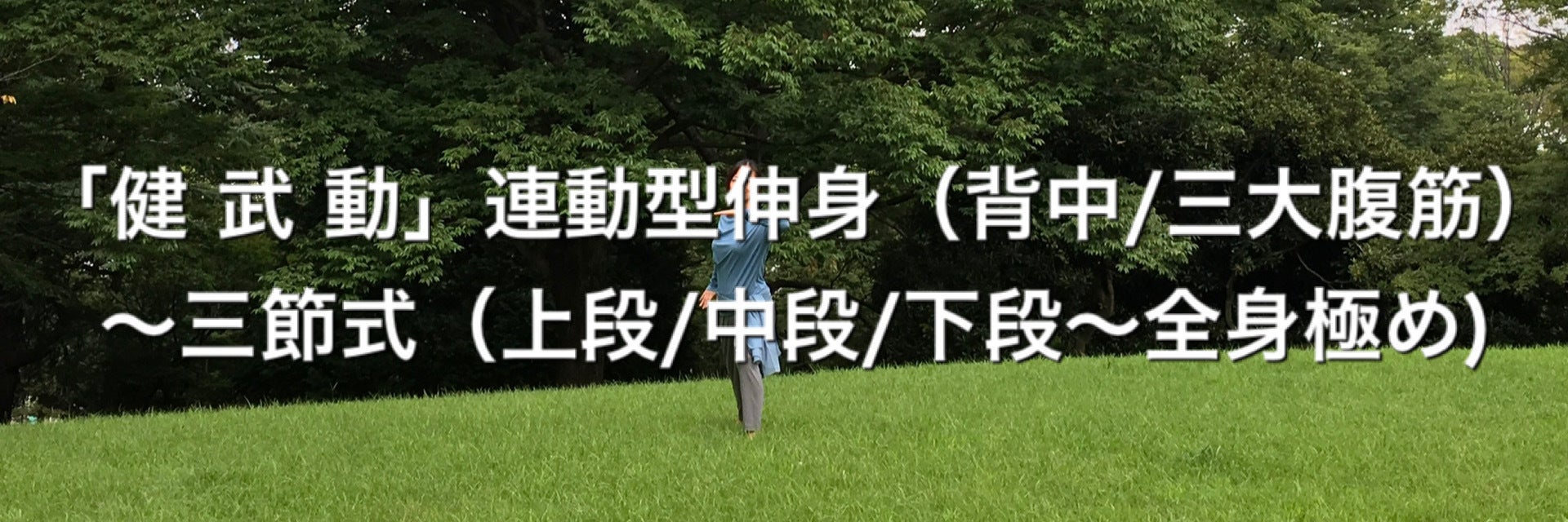 今回の体幹 整体操「健 武 動」はこの1億総体幹プロジェクトのためにアレンジして作った体操です。本来の「健 武 動」ではもっと武道的要素である動きが入り、より本格的なものとなっております。基本技法は同じですがマスターすれば倍の10分ほどの体操になります。