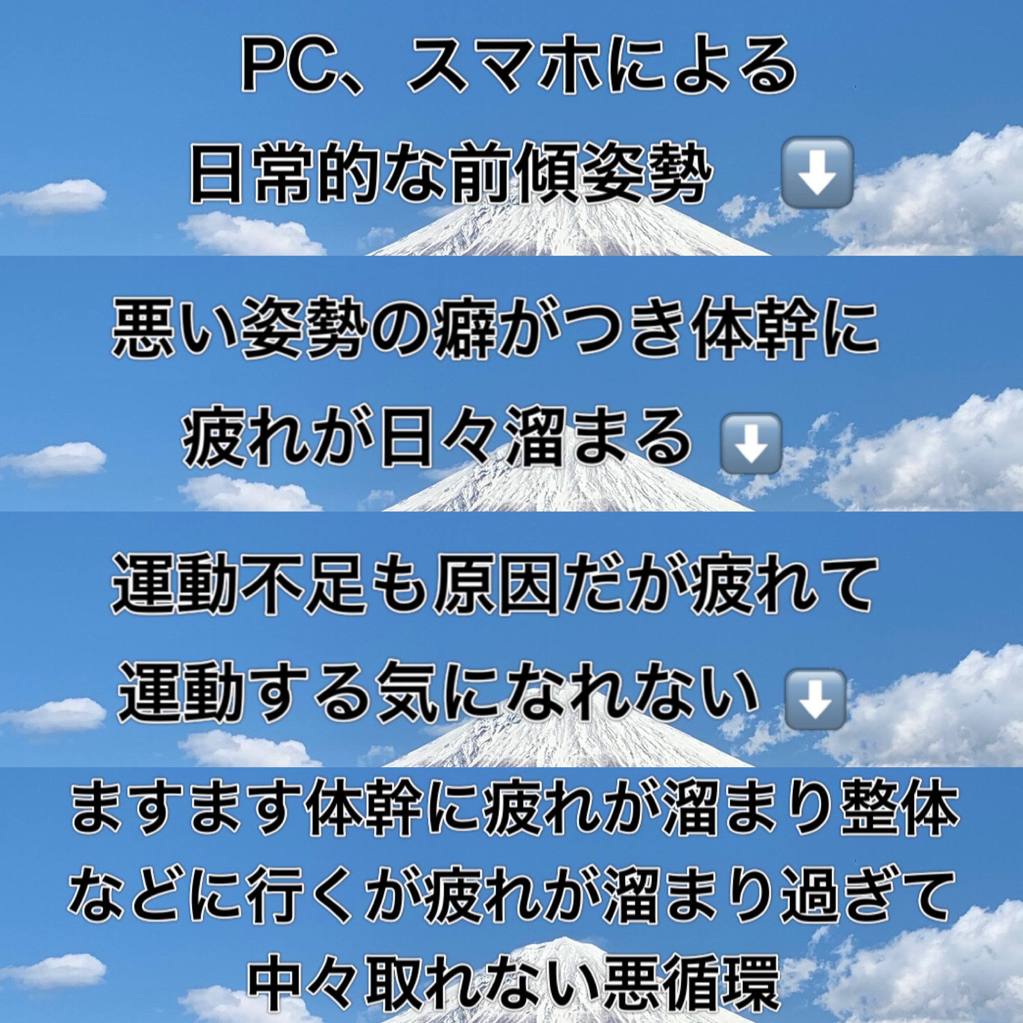 このままでは日本人の姿勢が危ない!国民皆、総体幹疲れ...体の不調に悩まされる日々が続いていく...これではダメだ...そんな中あるSNSがキッカケになり、この体幹サポート商品に巡り合い、これに体操をプラスすれば、本当に中々疲れが取れず、何をやっても解消しない、解消し切れない方々の悩みが完全になくなるのでは?