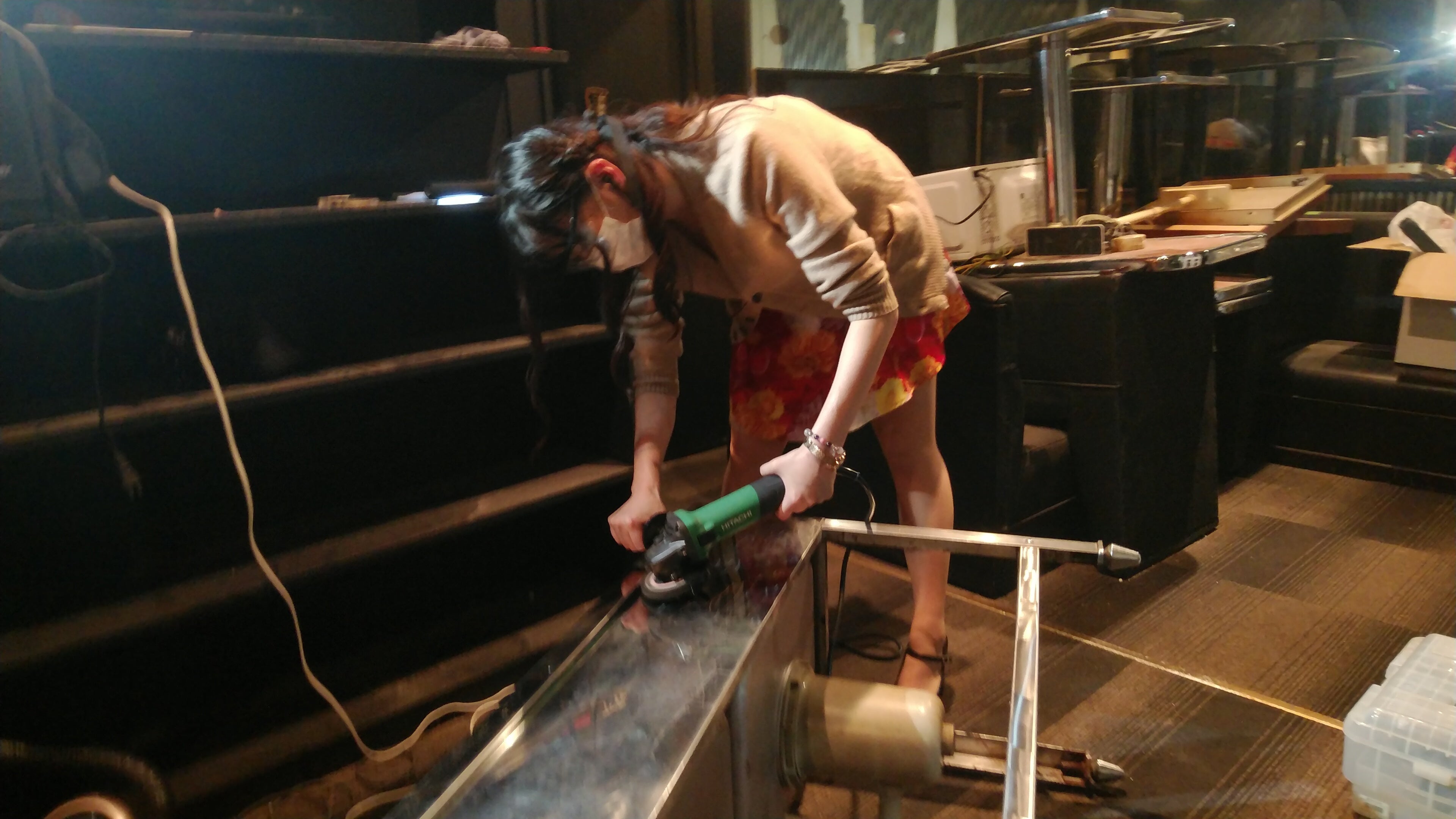 備品をグラインダーで磨くママ♪