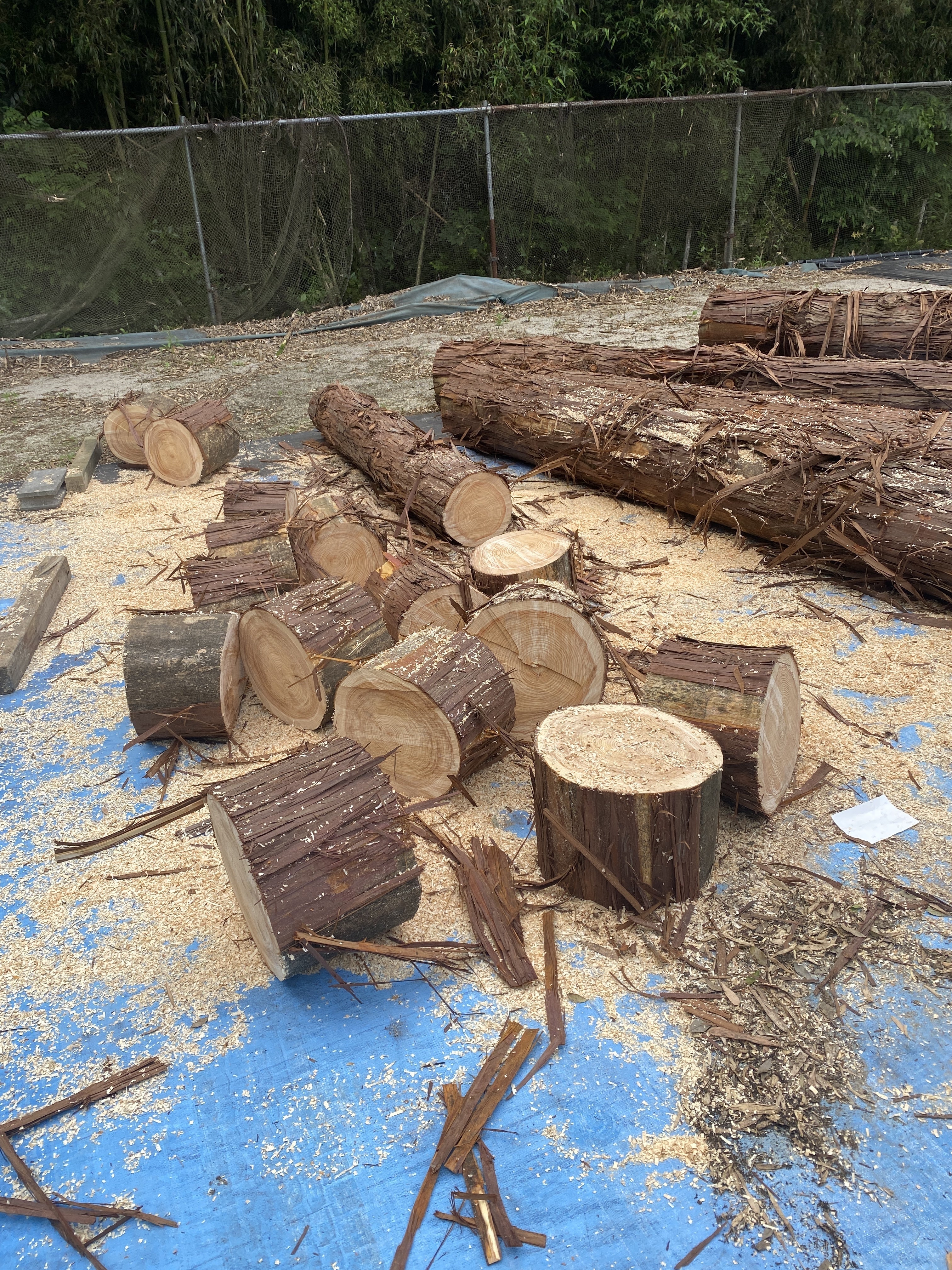 材木市場で仕入れている杉やヒノキの丸太