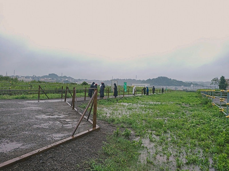 馬場の周囲は一段低くなっているので、まるで水田のようです。