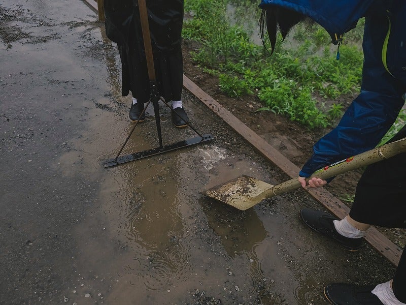 このような雨の日にいつも稽古で使っているテントを設置した場合、テント横幕の裾部分から大量に浸水してくるので、使い物になりません。