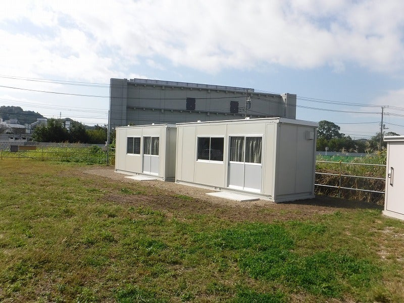 無事に更衣室の設置が完了しました。更衣室として2つの建物を用意しました。