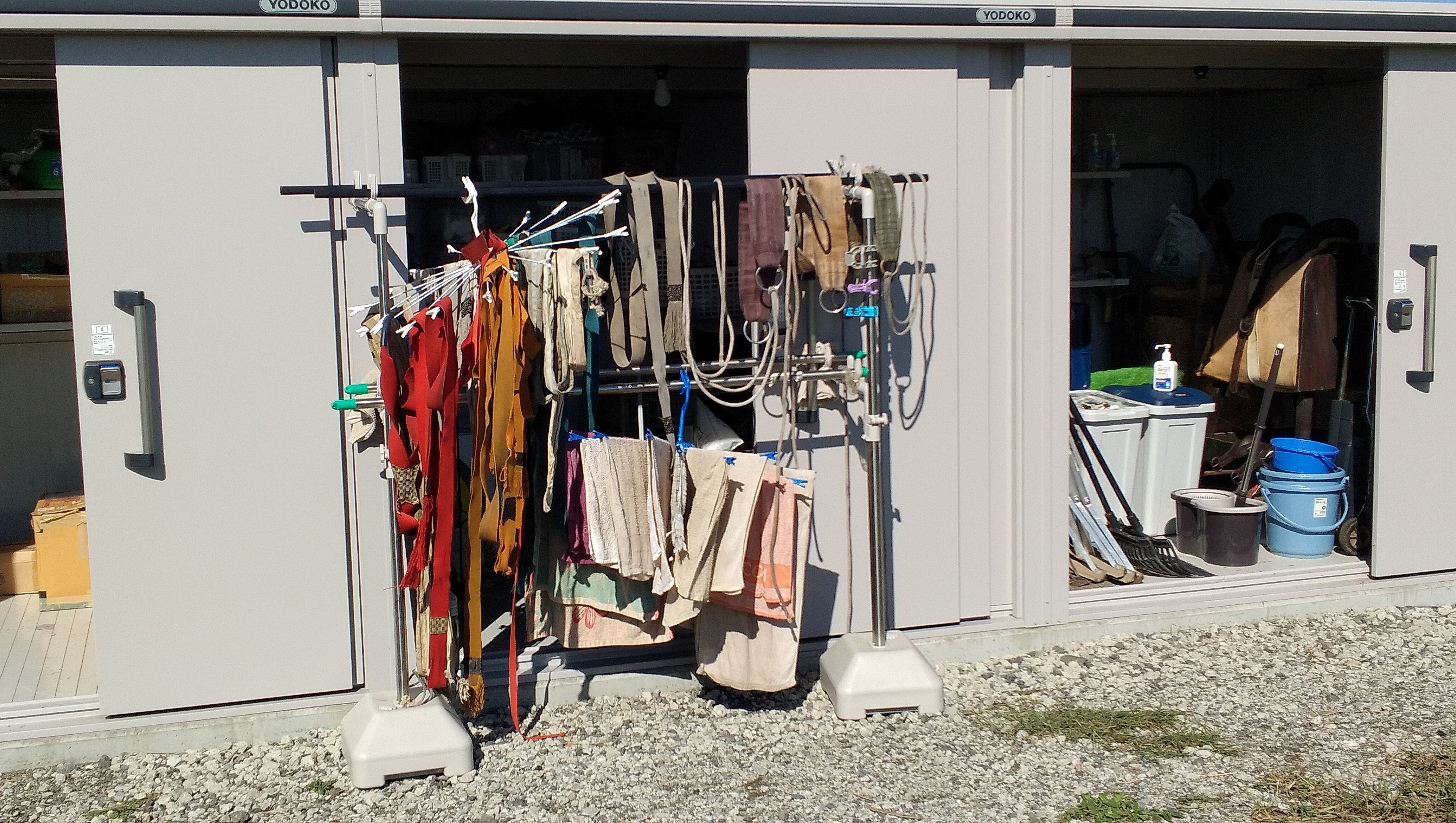 月曜日の朝、諸備品を倉庫から取り出し天日干しを行いました。