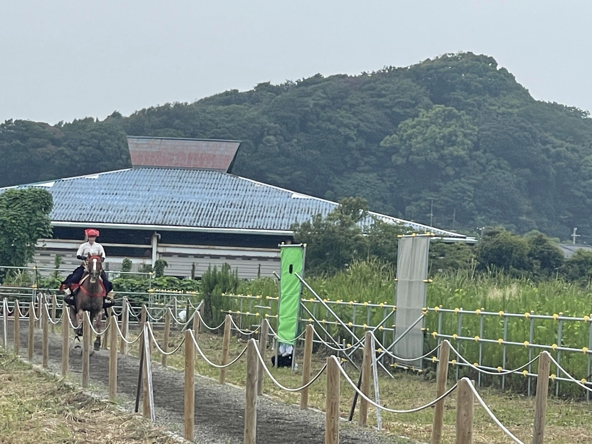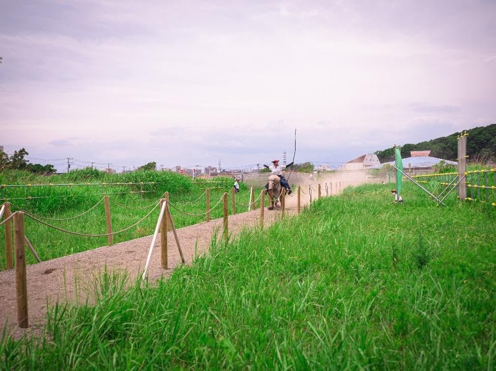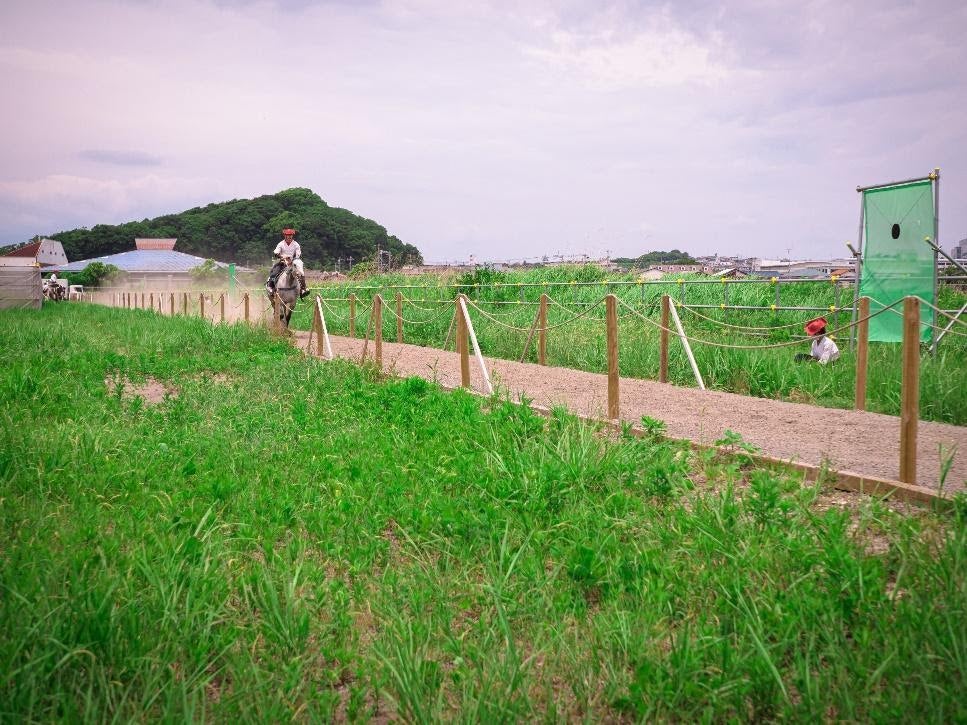 緑鮮やかな草原の中の流鏑馬馬場