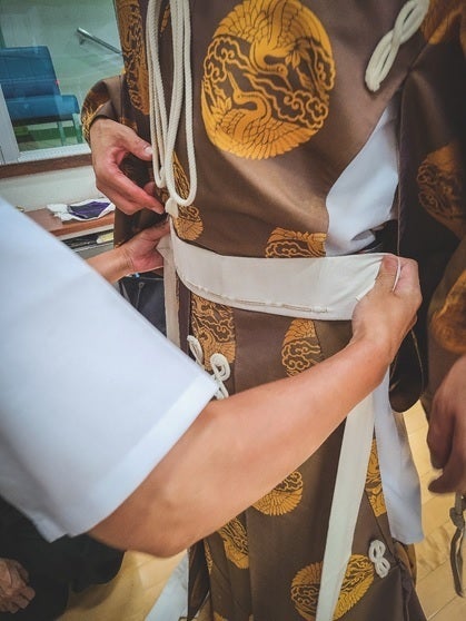 ただ、着付けは行事本番で諸役に直垂を身に付けてもらうために行うので、見栄えや手早さが重要です。