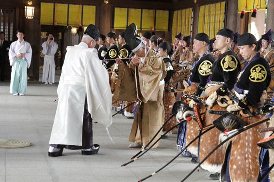 止の太鼓(とめのたいこ)により競射を終え、凱陣の式(がいじんのしき)へと移ります。
