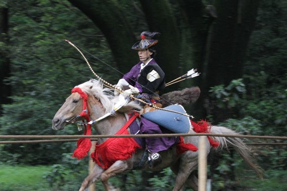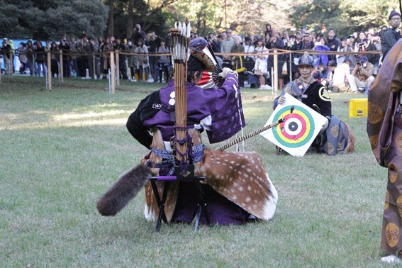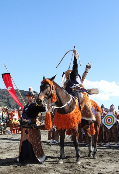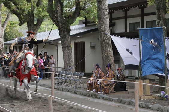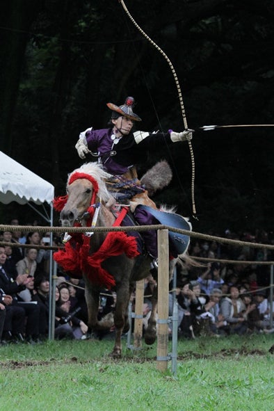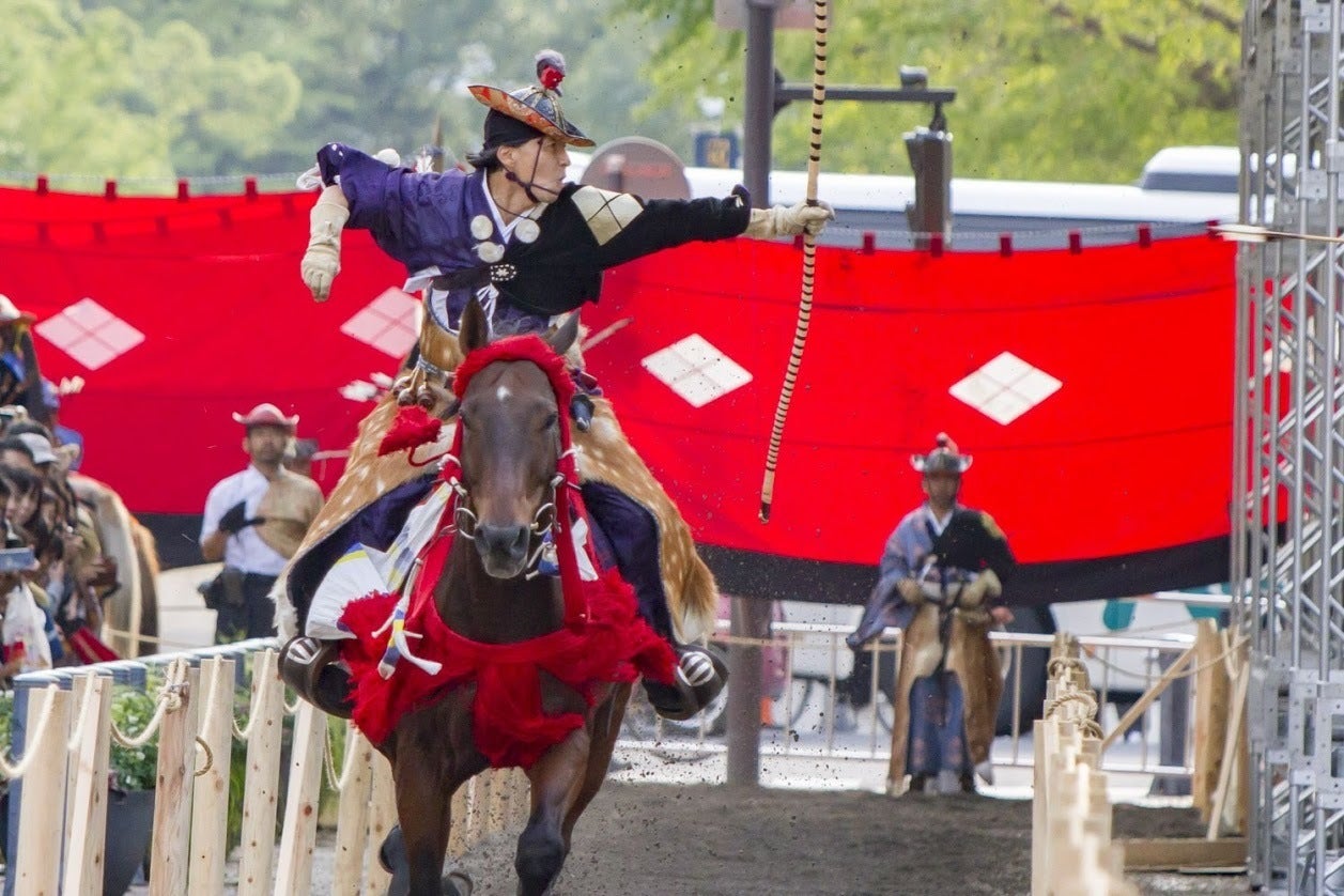 射手は馬を全速力で走らせながら一の的から順に、弓に矢を番えては放ち馬場を駆け抜けます。