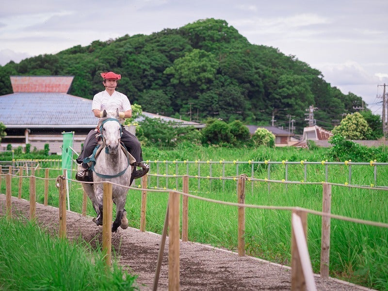 11月7日の稽古の様子をお伝えします。流鏑馬の稽古と聞くと、馬に乗り矢を射る練習と思われる方もいるかもしれません。角馬場での稽古や、直線距離を走る鉄砲馬場での稽古だけではありません。馬場のいたるところに稽古をする場所があります。馬の日除けの場所のそばには、弓の稽古を行う場所があります。何度も体の動きを確認しつつ、弓を射る稽古を行います。こちらは木馬にまたがりながらの弓の稽古です 。角馬場での稽古の後、鉄砲馬場での稽古となります。まずは、馬を慣らしながら、馬場の安全確認を行います。このように馬場のいたるところで、門人たちが稽古を重ねています。流鏑馬という日本の伝統文化を後世に維持継承するためには、射手になるまでの数年だけでなく、射手になってからも数十年も稽古を続けるわけですから、技量向上に資するだけの稽古環境を整えることも、大日本弓馬会の大切な活動です。その中でも、このたびの更衣室、水道、日除けは最低限必要な付帯設備です。皆様の力強い御支援をよろしくお願いいたします。