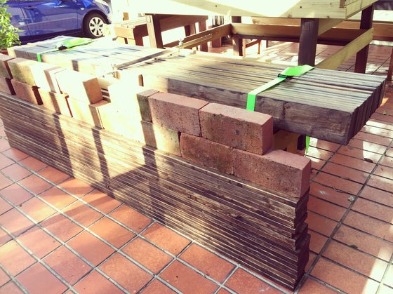 『そる』どころか『ねじれる』ヤツが出てきたので、固定バンドとレンガで固めてみました。