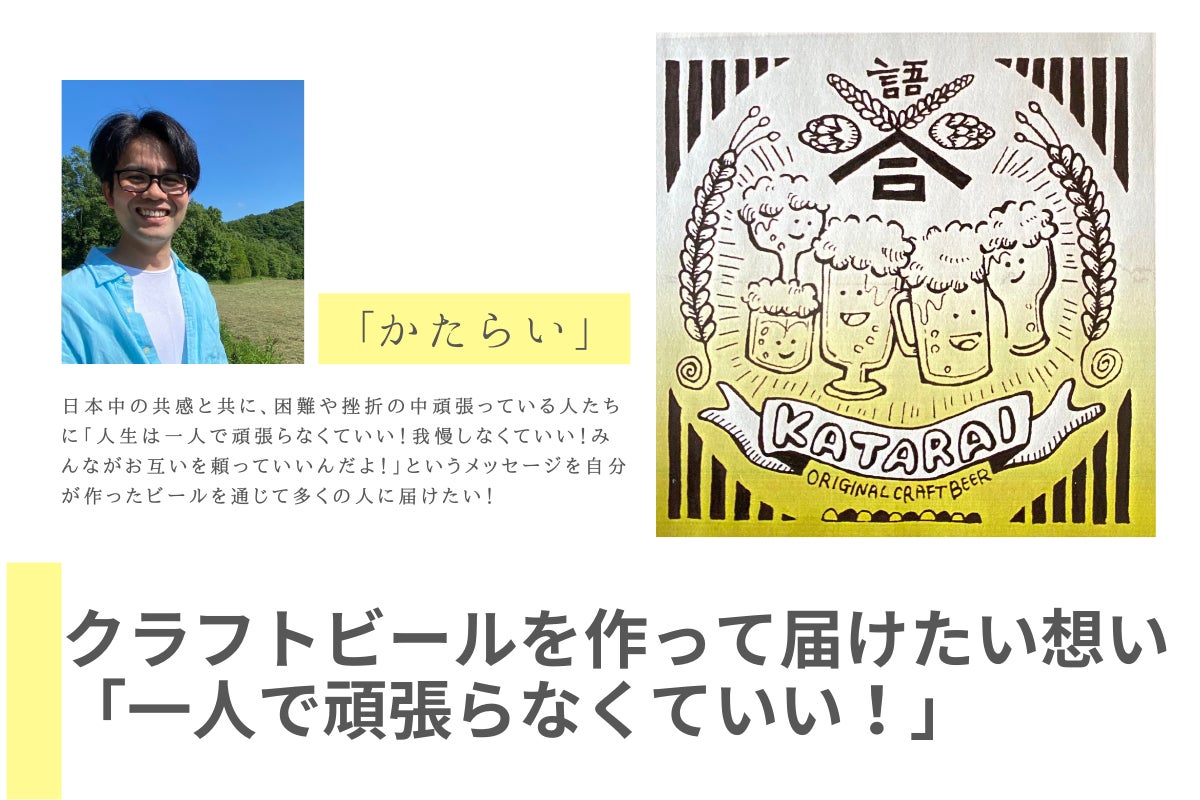 このプロジェクトは、ボクの想いを乗せてたビールを通じて、たくさんの人の共感を、今「1人で頑張っている人に」届けたいとの思いでやっています。