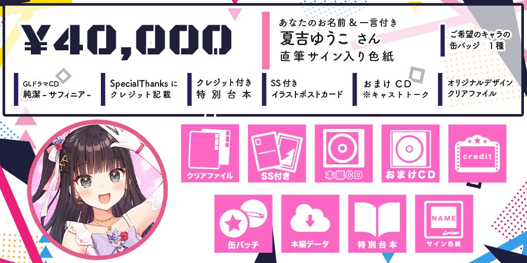 2021/12/11 12:00こんにちは。平素より『純潔-サフィニア-』を応援していただき誠にありがとうございます。リターン品について現在順次発送中です。一般販売前までに先行してお届けいたしますのでもうしばしお待ちください。発送完了後、ご支援者さまへCAMPFIREのメッセージに連絡が入ります。その際、DL限定リターン品もメッセージに添えますのでお気をつけください。また、複数コースご支援されているかたは、それぞれ別口として梱包し発送するため複数発送通知のご連絡が入ります。※ご支援者さまへ発送先の住所変更や不明点などありましたら、メッセージにてご連絡またはクラウドファンディングQ&Aに従い住所変更の設定をお願いします。引き続き「純潔-サフィニア-」をよろしくお願いいたします。 もっと見る【予約開始】
