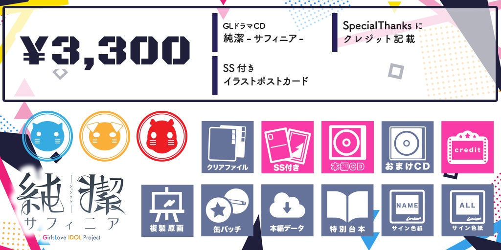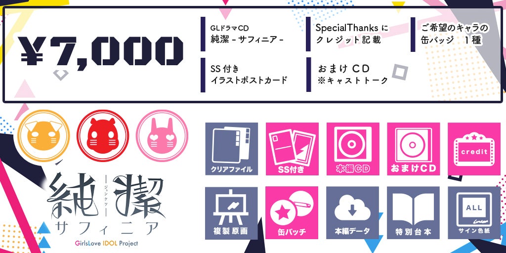 2021/12/25 11:51こんにちは。平素より『純潔-サフィニア-』を応援していただき誠にありがとうございます。リターン品について先日すべて発送手続きが完了いたしました。みなさま本当にありがとうございます。リリースのお知らせ『純潔-サフィニア- 1st Album』が本日リリースいたしました。クラウドファンディングからリターン発送、リリースまでお時間頂戴いたしましたが、みなさまのお力添えのおかげで無事リリースできたこと、改めて感謝申しあげます。また、購入後に到着報告や感想を呟いてくださるみなさま、ありがとうございます。不備などございましたらすぐにご連絡ください。本プロジェクト『少女たちの運命をみんなで紡ぐ「純潔-サフィニア-」』の活動報告につきましては、本日をもって終了とさせていただきます。『純潔-サフィニア-』をご支援・応援くださり本当にありがとうございます!これからも彼女たちのストーリーは続いていきます。今後とも純潔-サフィニア-をよろしくお願いいたします。代表 辰巳 もっと見る