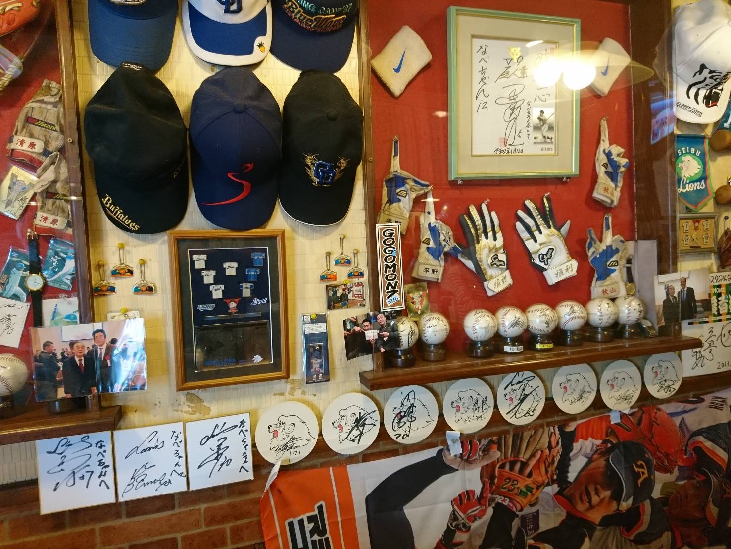 マスターは西武グループ勤務時代に、たくさんの西武ライオンズ選手との交流がありました。当時の選手達から頂いた貴重なサイン入りグッズが店内にびっしり飾られています。西武黄金時代の懐かしい選手達のバット、グローブ、現選手、コーチのサイン、カードなどなど。また、他球団のキャップやユニフォームもたくさんあり、まるでプロ野球ミュージアムのよう。埼玉西武ライオンズファンだけでなく、プロ野球ファン皆が楽しめるお店です。
