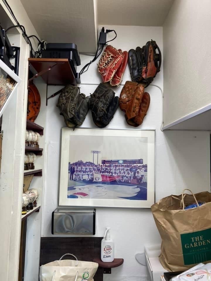 内装工事が終了し、グッズのディスプレイが始まりました。西武ライオンズ選手のグローブやサインボール、サイン入りバットが飾られました。誰のかはお店で確認して下さいね!なべちゃんでの楽しみの一つです。早くグッズたちに囲まれてビールが飲みたいな!