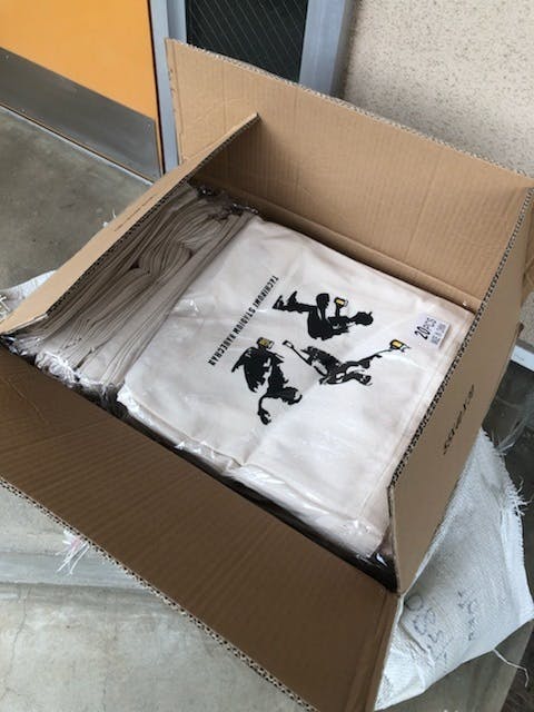 お待たせしておりますリターングッズの準備が着々と進んでおります。 写真はトートバッグです!