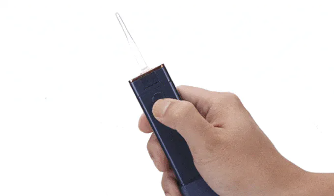 Kamieda本体の長さはわずか115㎜、重さ120g、スマホよりも小さいサイズで口紅と同じ感覚で大変持ち運びしやすくなっていますので、例えば外出や勤務時間でも、トイレに持ち込んで口腔洗浄ができます。