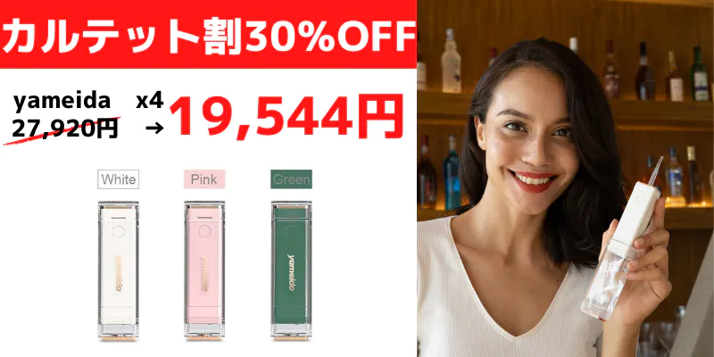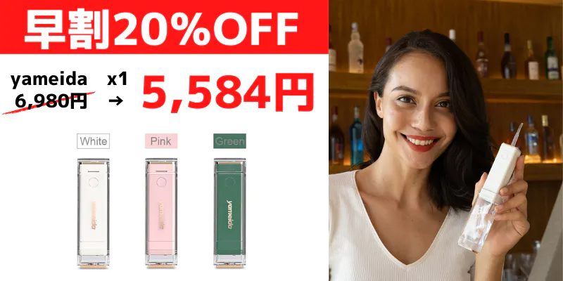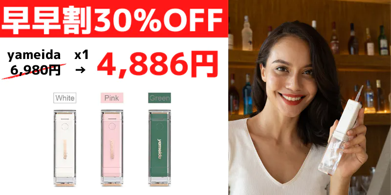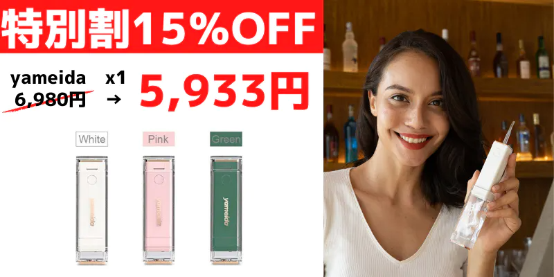 歯の隙間や歯周ポケット内の汚れを水圧で洗浄できる、口腔洗浄機ジェットウォッシャー「yameida」です。yameidaは以下の特徴があります。
