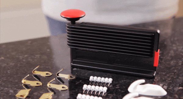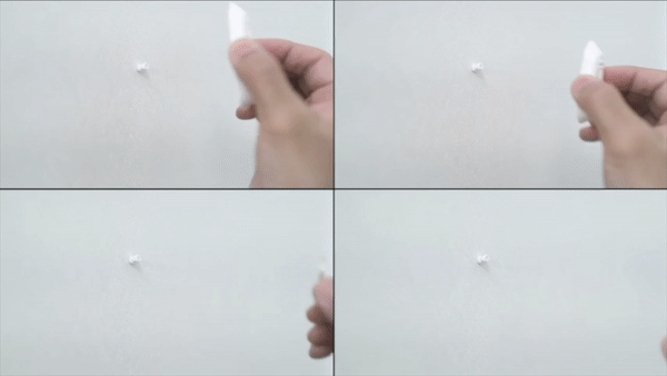 ステップ2 TAKKERをしっかりと持ち、プランジャーの端を持ち上げて壁から離します。Takk(ピン)は壁から簡単に出てきて、1mmの小さな穴が残ります。