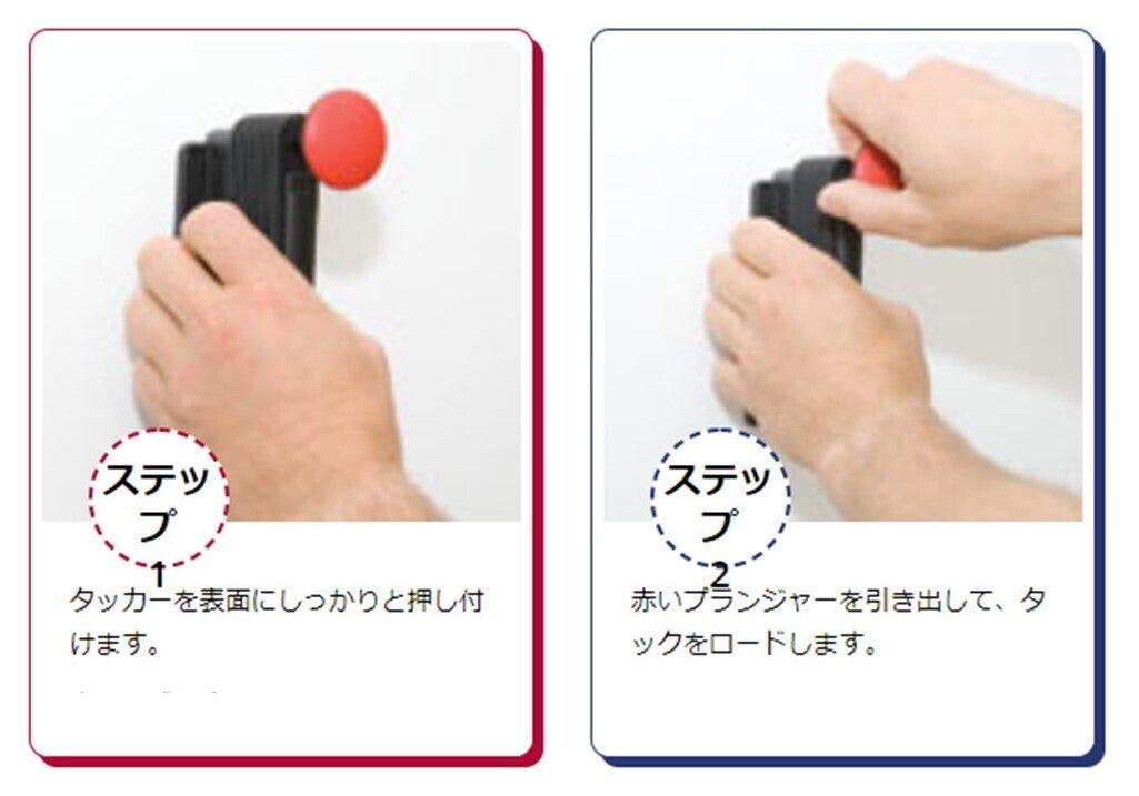 作業の前に、壁または表面にタック(ピン)を挿入する練習をしてください。