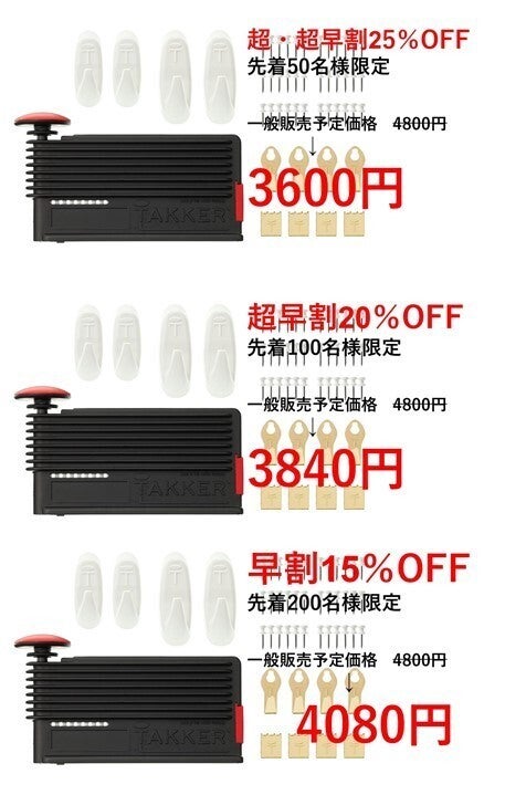 2021/07/26 10:20「TAKKERキャンペーンがスタートしました。「TAKKER」は壁に簡単にピン留めができるとても便利な商品になります。力のない女性でも簡単にピン留めができます。カレンダー、時計、絵画、鏡など色んなものをかけてあなたのお部屋を飾り付けしてみましょう!是非とも、皆様のご支援をお待ちしております。よろしくお願いします。 もっと見る