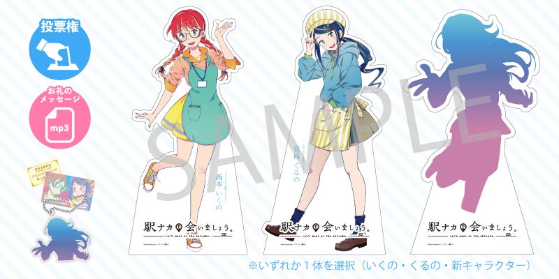 2021/11/22 13:46ご支援いただいた皆さまへいつも応援ありがとうございます!駅ナカで会いましょう。プロジェクト応援キャラクターの西本いくの&葛西くるのです。お待たせしておりました残りのクラウドファンディング「リターン品(審査員認定証・限定アクリルキーホルダー)」につきまして発送の準備が整いましたので、本日より発送作業を開始してまいります。・駅ナカ応援キャラクター総選挙「審査員認定証」(86×54mmPETカード)→11月22日より郵送にて順次発送・完成した新キャライラストデザインの限定アクリルキーホルダー→11月22日より郵送にて順次発送お住まいの地域によって少々タイムラグが発生するかと思いますが、残りのリターン品の到着をもう少しだけ楽しみにお待ちいただければ幸いです。---------------------------------▽その他リターンのお届け状況・西本いくの(CV:狐崎あやめ)&葛西くるの(CV:豊ゆうみ)からのサンクスメッセージ音源データ(mp3)→CAMPFIREメッセージにてお届け済み・本来オモテにはでない賀茂川先生イラスト制作過程の新キャラクターラフ画像データ(JPG)→CAMPFIREメッセージにてお届け済み・オンラインファンミーティング参加権→CAMPFIREメッセージにてお届け済み(※アーカイブ動画URLもお届け済み)・新キャラクターの名前の命名権→検討中(※新キャラの名前は決定次第、駅ナカで会いましょう公式HP等にて発表いたします。)---------------------------------※リターン品のお届けについてのお問い合わせはCAMPFIRE「プロジェクトオーナーへメッセージ」から駅ナカで会いましょうプロジェクト運営(株式会社ヘソプロダクション)までお願いいたします。それでは、これからも「駅ナカで会いましょう。」への応援を、どうぞよろしくお願いいたします! もっと見る【ご報告】各リターン品のお届け予定について