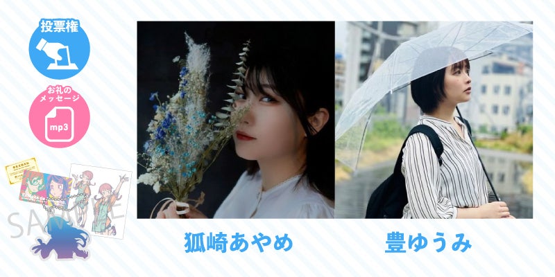 駅ナカで会いましょう声優の「狐崎あやめ」「豊ゆうみ」オンラインファンミーティング参加権です。