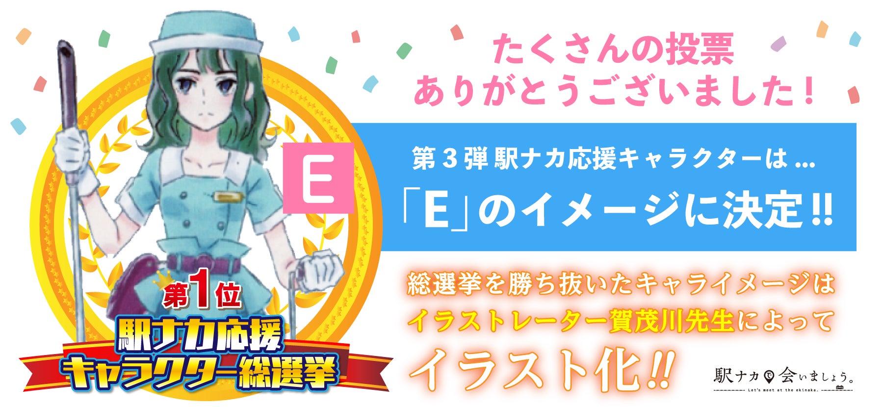 このたびは駅ナカで会いましょう「駅ナカ応援キャラクター総選挙」への多大なご支援、誠にありがとうございました!