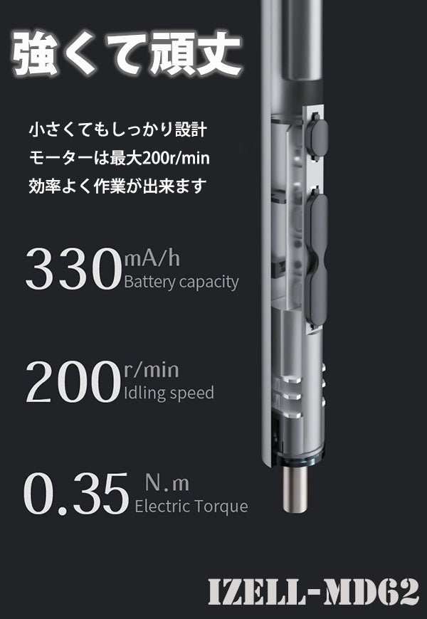 IZELL-MD62の先端は内側だけが回転する構造になっている為、スクリュー部分に誤って何かを巻き込む可能性を低くしてくれます。