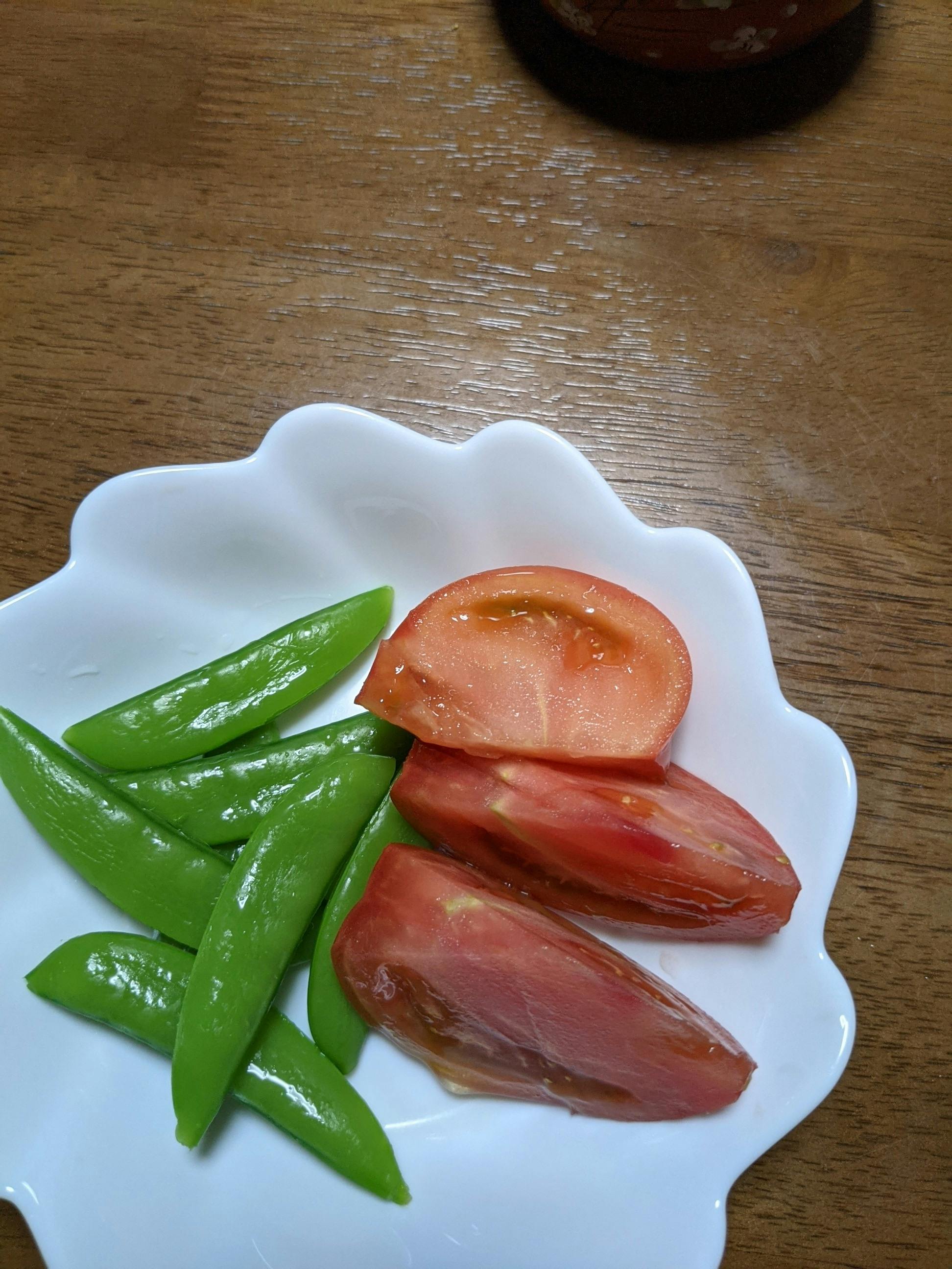 さて今日はトマトとスナップエンドウを収穫して食べます!!