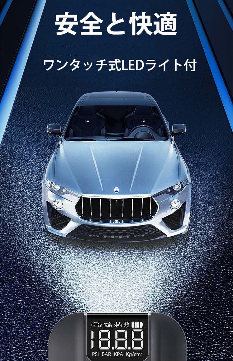 それに加えて「PSI」「BAR」「KPA」「Kg/㎠」の空気圧単位が設定出来る為、一度設定が完了してしまえば次回からワンタッチで簡単に空気を入れる事が可能です。