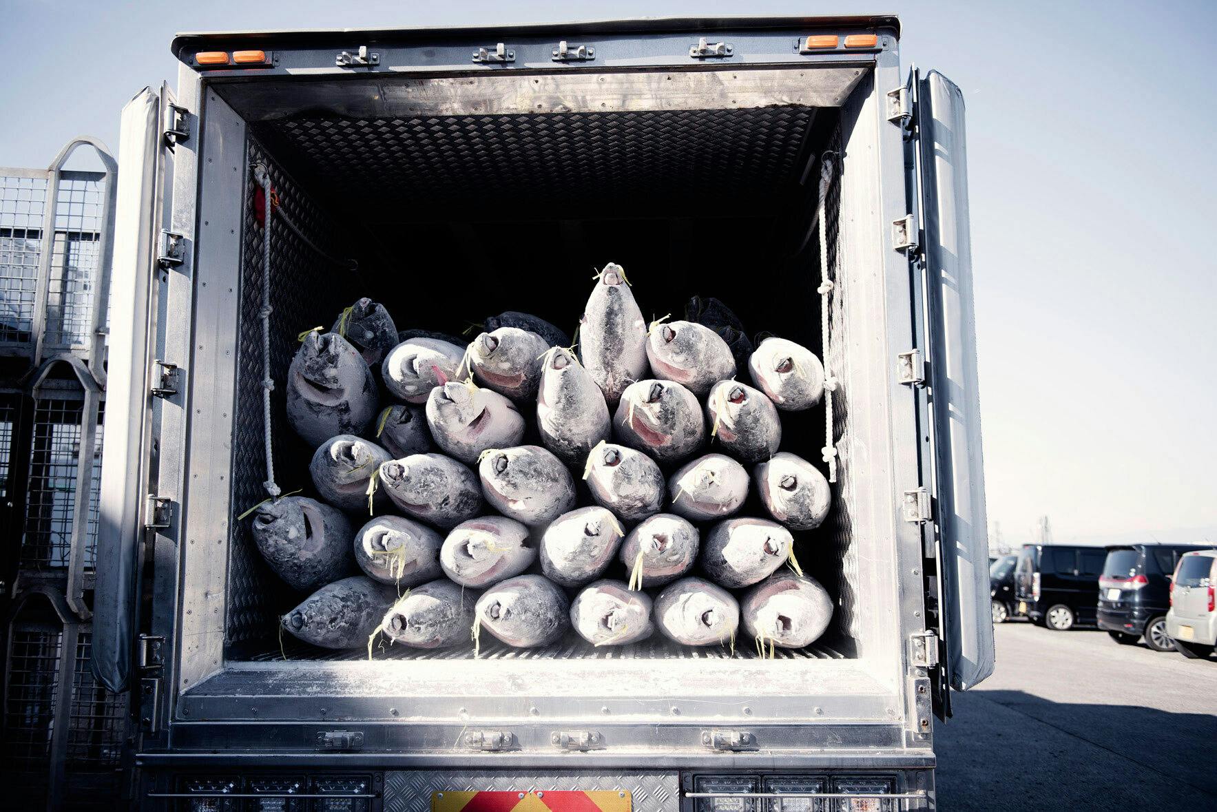 船上で水揚げされたまぐろは即座に処理され、-60°Cに凍結し運搬され、